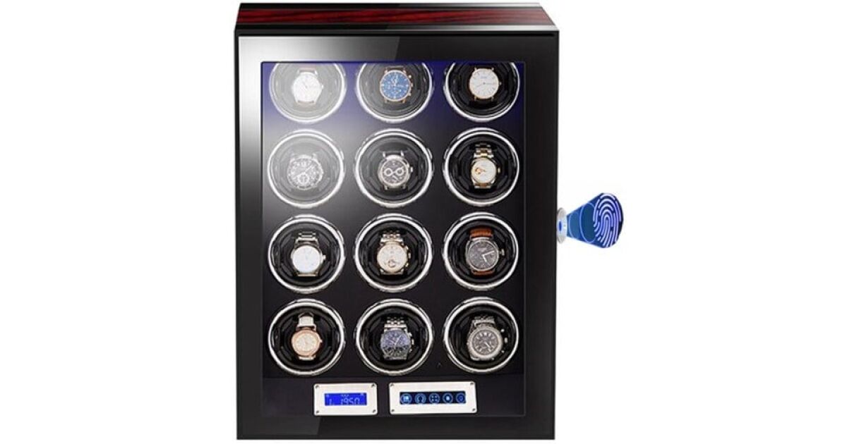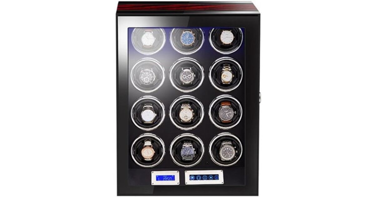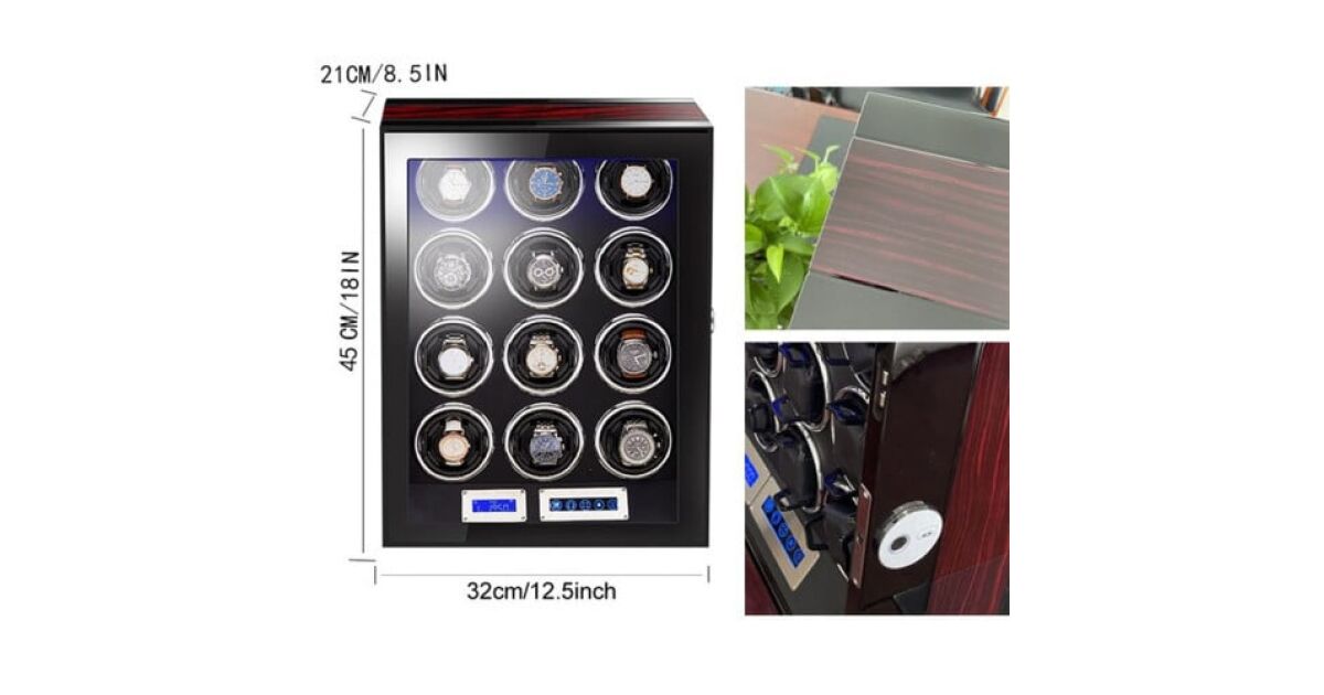 Ten luksusowy automatyczny nawijacz zegarków idealnie zadba o Twoje cenne zegarki, zapewniając ich ciągłą pracę i nienaganny stan. Oferuje miejsce na 12 zegarków w stylowym, mahoń-czarnym wydaniu.