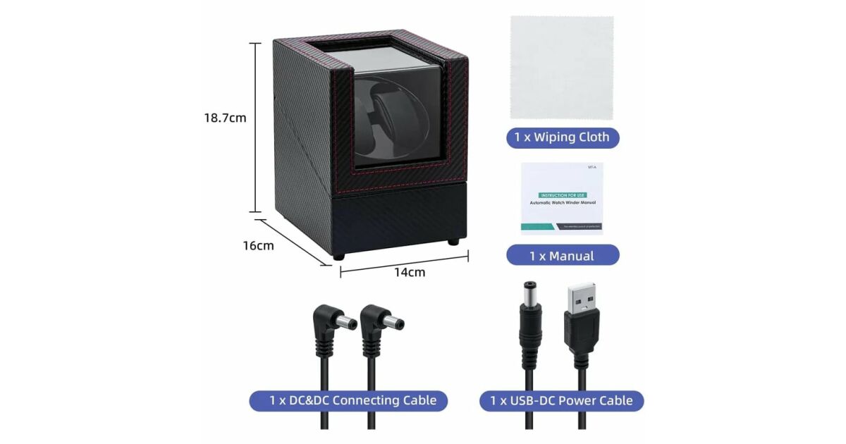 - Możliwość łączenia: Połącz kilka nawijaczy zegarków dla całej swojej kolekcji (za pomocą dołączonego kabla).