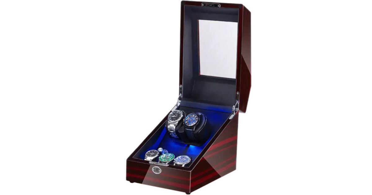 iUni Automata Nakręcarka do Zegarków: 2+3 Zegarki, Drewno Mahoń ⌚