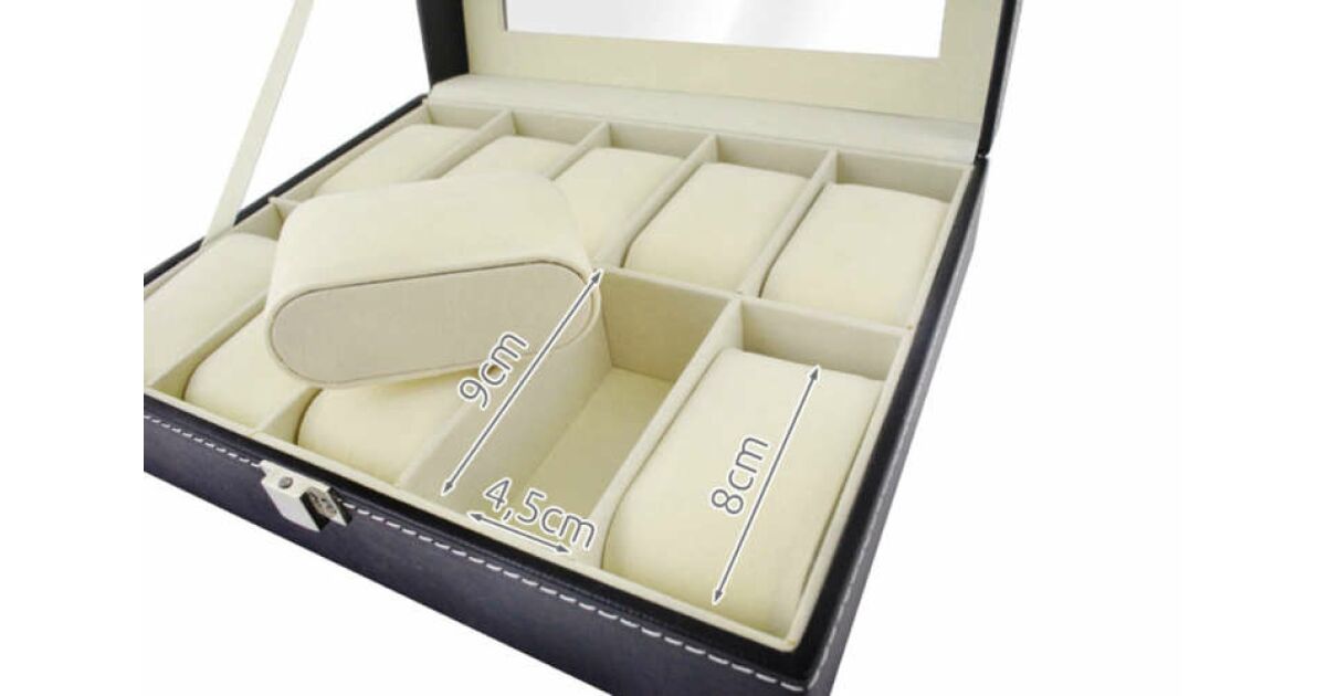 Ten stylowy, czarny organizer na zegarki idealnie chroni Twoje cenne zegarki i biżuterię. Miękka wyściółka zapobiega zarysowaniom, a przezroczysta pokrywa pozwala elegancko zaprezentować Twoją kolekcję. Bezpieczny zamek zapobiega przypadkowemu otwarciu. Użytkownicy potwierdzili, że produkt spełnia oczekiwania i może być świetnym prezentem.