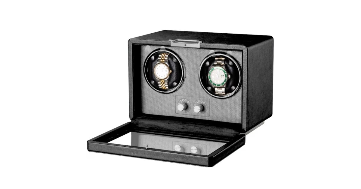 iUni Rotomat na 2 Zegarki Automatyczne, Retro Watch Winder, Skóra Ekologiczna, Czarny opis