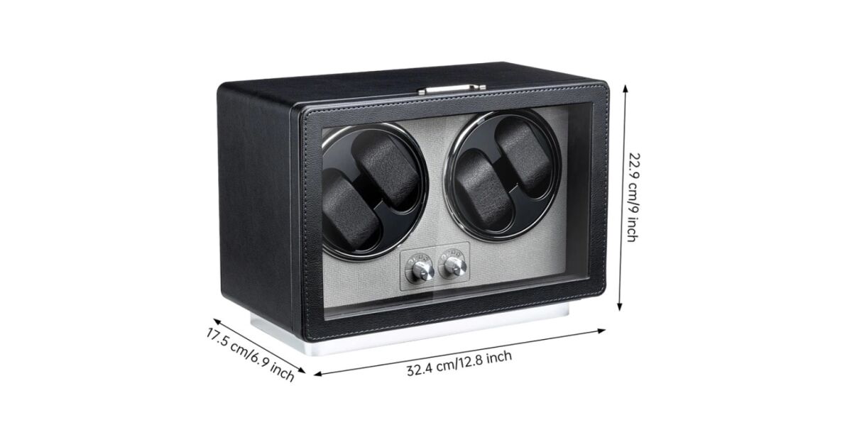 iUni Rotomat na 4 Zegarki Automatyczne, Retro Watch Winder, Skóra Ekologiczna, Czarny opis