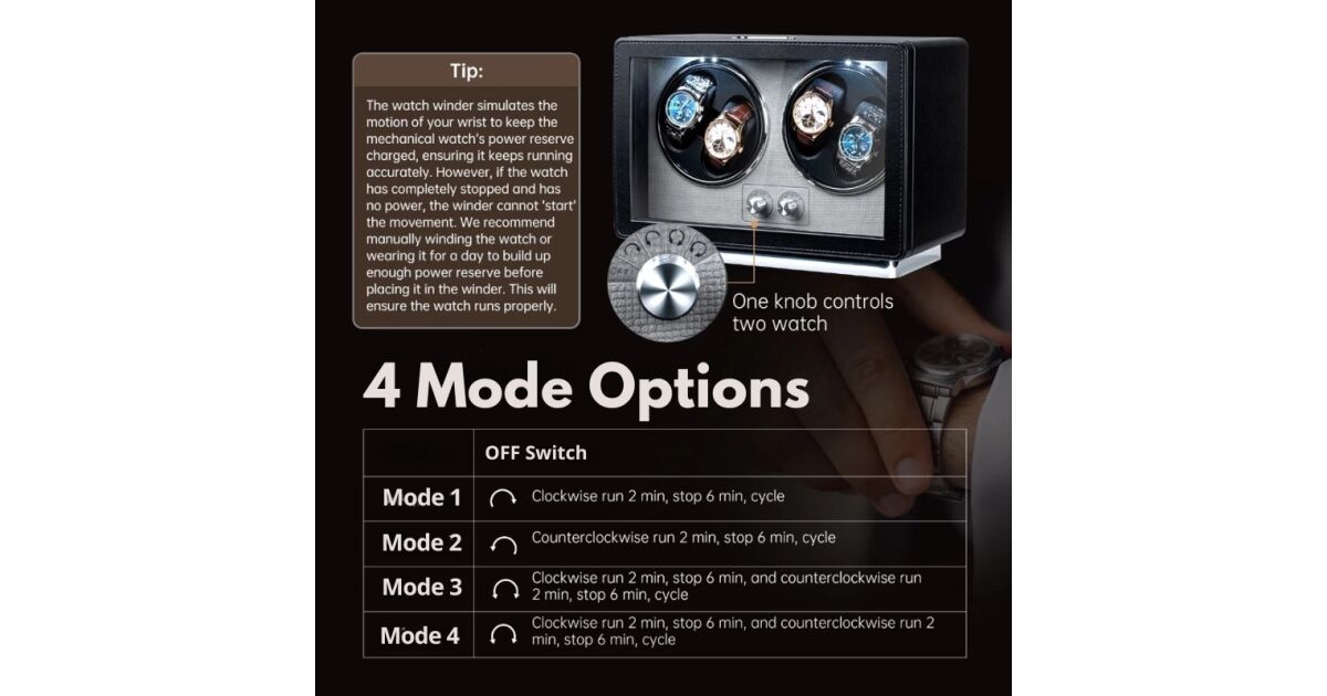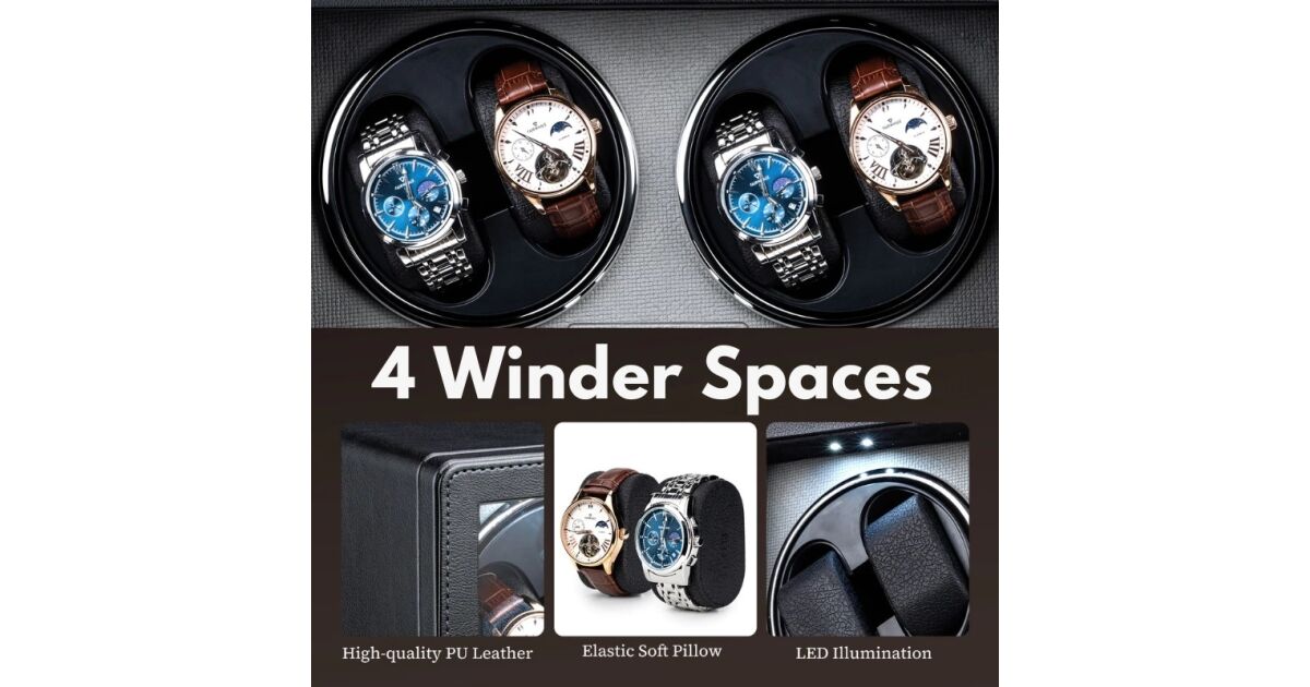 Posiada 4 miejsca do nakręcania, dzięki czemu możesz konserwować kilka zegarków automatycznych jednocześnie.