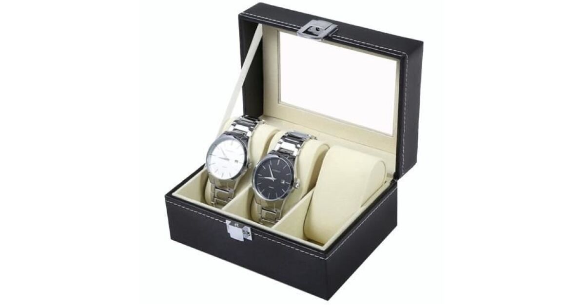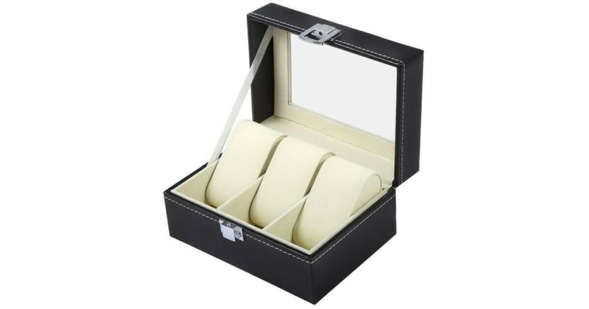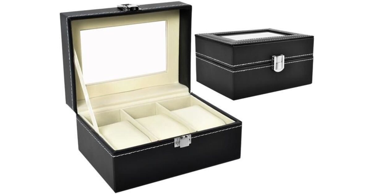 Pudełko na 3 zegarki, skórzane pudełko do przechowywania zegarków ze szklanym blatem, elegancki wygląd, czarne recenzje