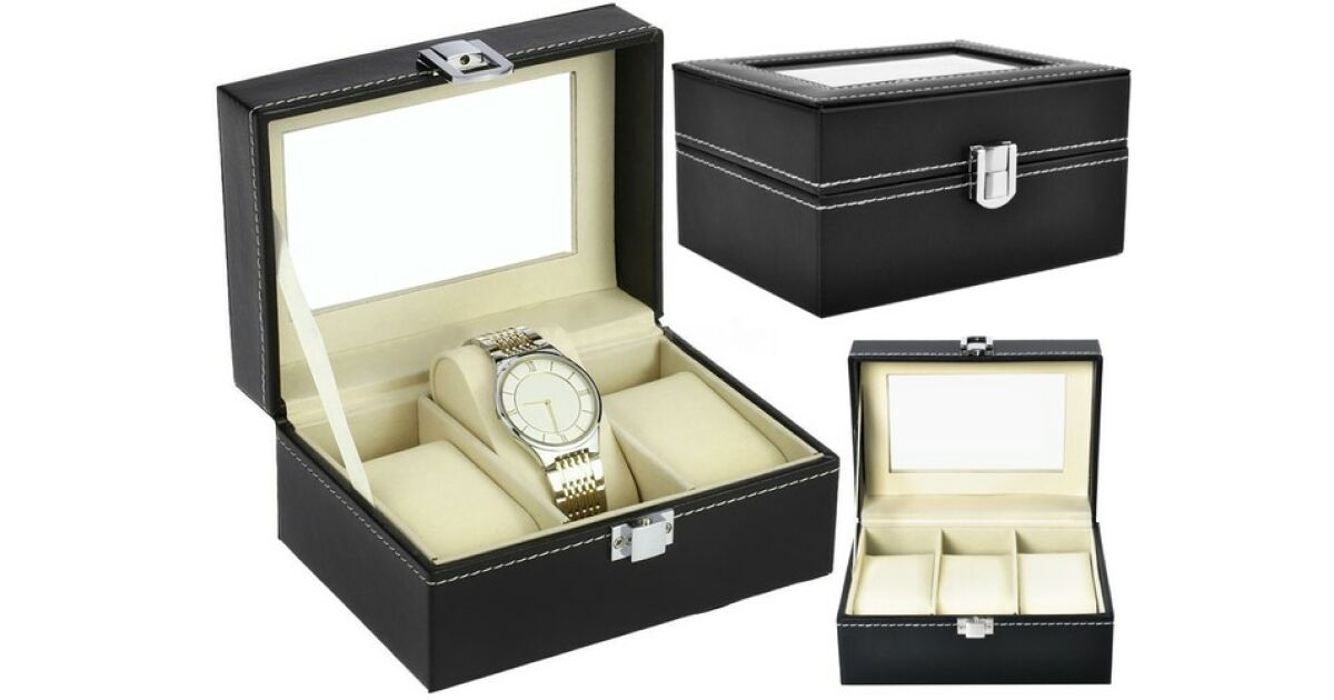 Elegancki Pudełko na Zegarki i Biżuterię 3-komorowe ⌚