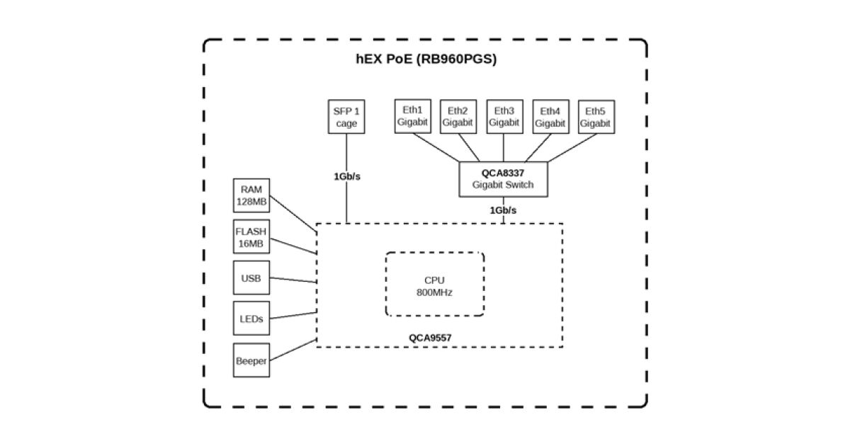 Mikrotik Wired Ethernet Router RB960PGS, hEX PoE, CPU 800MHz, 128MB RAM, 16MB, 1xSFP, 5xGigabit LAN, 1xUSB, Power Output On ports 2-5, Ourput: 1A max per port; 2A max total, RouterOS L4 | hEX PoE Router | RB960PGS | No Wi-Fi | 10/100/1000 Mbit/s | Ethernet LAN (RJ-45) ports 5 | Mesh Support No | MU-MiMO No | No mobile broadband | 1xUSB | 12 month(s)