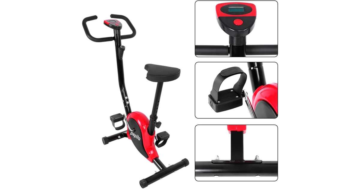 Mechaniczny rower treningowy Pepita z licznikiem kalorii i wyświetlaczem #czerwono-czarny opis