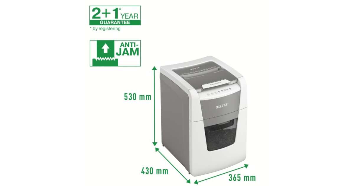 Ta automatyczna niszczarka LEITZ to idealny wybór zarówno do biura, jak i do domu. Duża pojemność podajnika i cicha praca gwarantują efektywną i bezproblemową pracę.