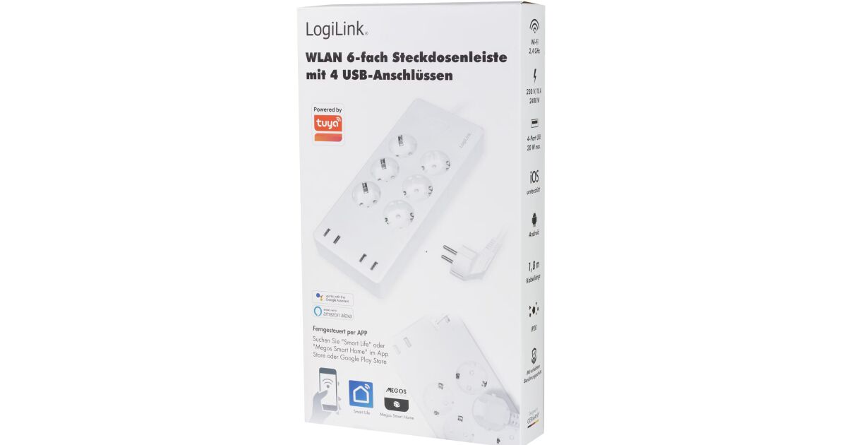 Steruj swoimi urządzeniami domowymi ze smartfona z dowolnego miejsca i o każdej porze! Ta inteligentna listwa WiFi LogiLink ma 6 standardowych gniazd i 4 szybkie porty ładowania USB, dzięki czemu możesz podłączyć i sterować wszystkimi swoimi urządzeniami jednocześnie.