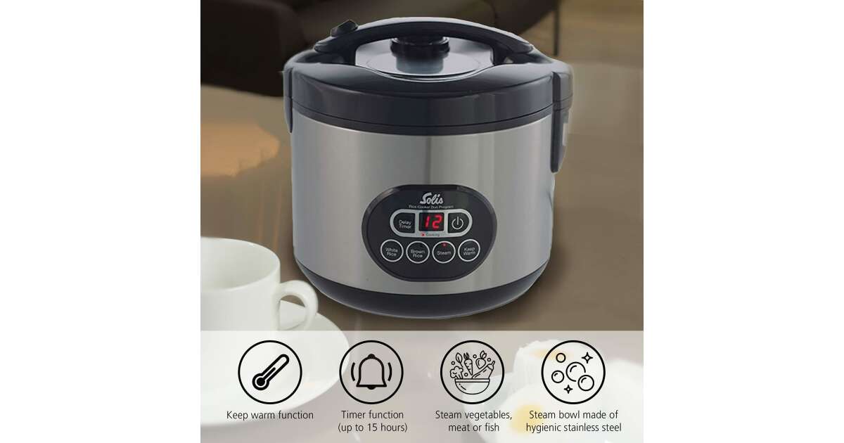 Solis Rice Cooker DUO Ryżowar i parowar, pojemność 1,2 l / 6 porcji, ekran cyfrowy i timer, funkcja pary i podgrzewania, stal nierdzewna recenzje