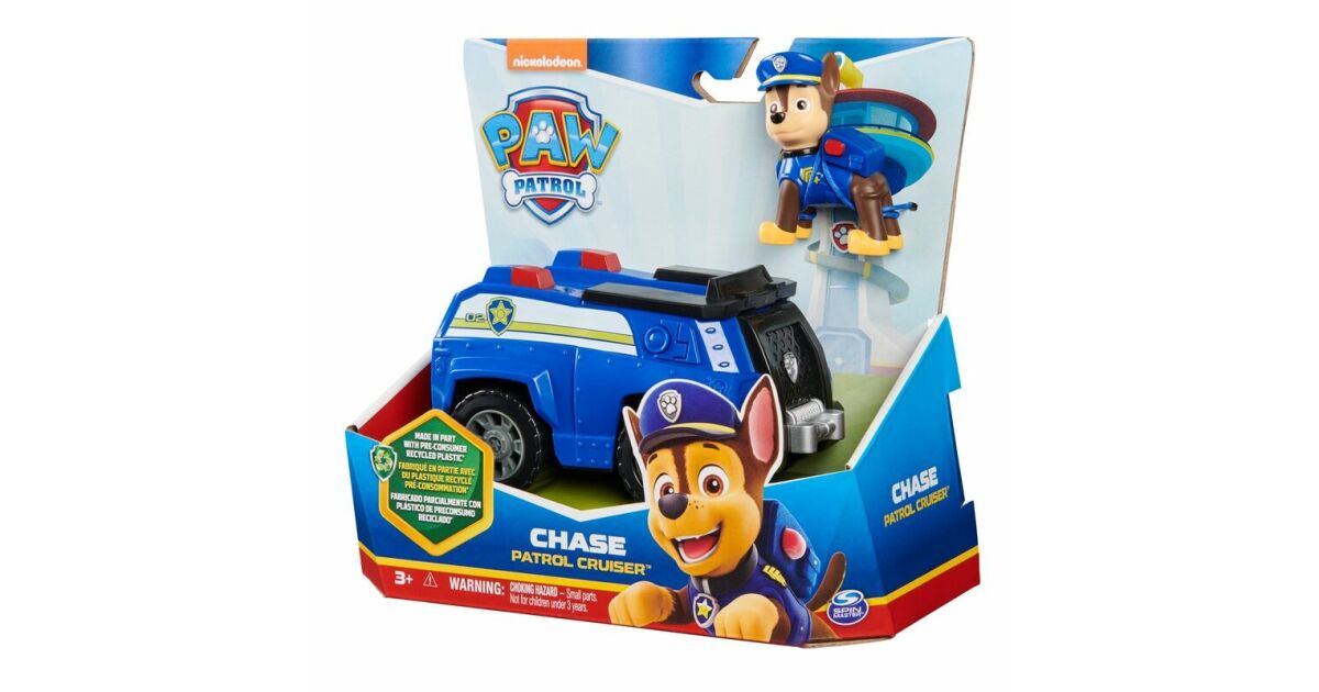 Psi Patrol: Pojazd podstawowy Chase'a (wersja EKO) Psi Patrol jest na fali w swoich pojazdach ratunkowych. Dołącz do Chase'a podczas pełnych akcji misji w jego radiowozie. Gdy nadejdą kłopoty, umieść Chase'a (figurka w zestawie) w fotelu kierowcy i ruszaj na ratunek dzięki prawdziwym, działającym kołom. Dzięki autentycznym detalom i realistycznym funkcjom ukochany pies policyjny z Psiego Patrolu i jego radiowóz ożywiają wszystkie emocje związane z serialem. Chase i jego pojazd są produkowane w sposób ekologiczny i są wykonane w co najmniej 80, z plastiku pochodzącego z recyklingu. Połącz siły z resztą szczeniaków i ich pojazdami ratunkowymi (każdy sprzedawany osobno) i pomóż opanować sytuację w Zatoce Przygód. Aby rozegrać jeszcze więcej zabawnych i ekscytujących misji inspirowanych Psim Patrolem, zbierz wszystkie zabawki z filmu Psi Patrol, takie jak niesamowity Lotniskowiec dowodzenia, a także wszystkie specjalne zabawki z serii Psi Patrol dla dziewczynek i chłopców, takie jak figurki i zestawy Wielkie Szczenięta, Wodny Patrol i Big Truck Pups (każdy sprzedawany osobno). Ciesz się niekończącymi się przygodami ze swoim ulubionym bohaterem w jego charakterystycznym pojeździe. SAMOCHÓD Z PSIEGO PATROLU: Chase prowadzi śledztwo w swoim radiowozie. Dzięki autentycznym detalom i działającym kołom ten radiowóz jest gotowy do podjęcia ekscytujących misji ratunkowych.