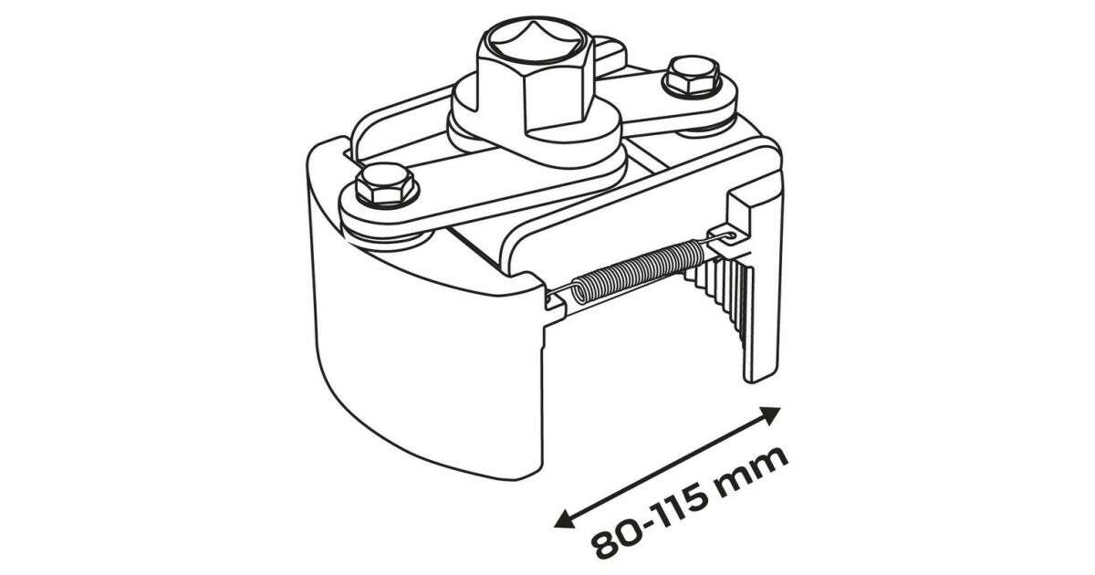 Wykonany ze stali klucz przeznaczony jest do montowania zewnętrznych filtrów olejowych z metalową obudową o średnicy od 80 do 115 mm.