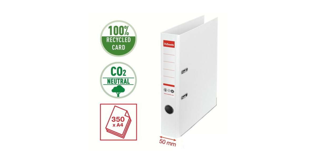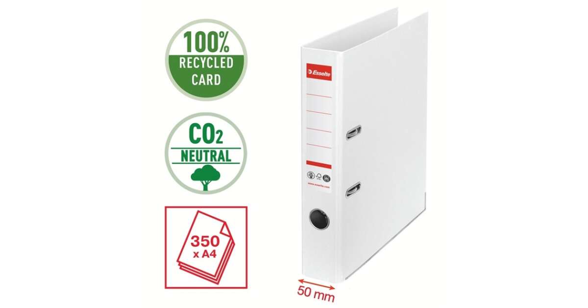 Przyjazny dla środowiska segregator wykonany z kartonu w 100% pochodzącego z recyklingu. Posiada certyfikaty środowiskowe FSC i Blue Angel. Unikalny mechanizm No.1 zapewnia najwyższą wydajność. Szerokość grzbietu 50 mm, odpowiedni dla dokumentów w formacie A4. Ten zrównoważony klimatycznie segregator doskonale pasuje do innych przyjaznych dla środowiska produktów Esselte, takich jak koszulki czy ofertówki na dokumenty wykonane z plastiku pochodzącego z recyklingu. Koncepcja nowoczesnych, żywych kolorów, pasujących do produktów Esselte z kolekcji Vivida, doskonale sprawdzi się zarówno w domu, jak i w biurze. Korzystając z segregatorów Esselte wpłyniesz na wygląd nie tylko swojego biura, ale także całej planety.