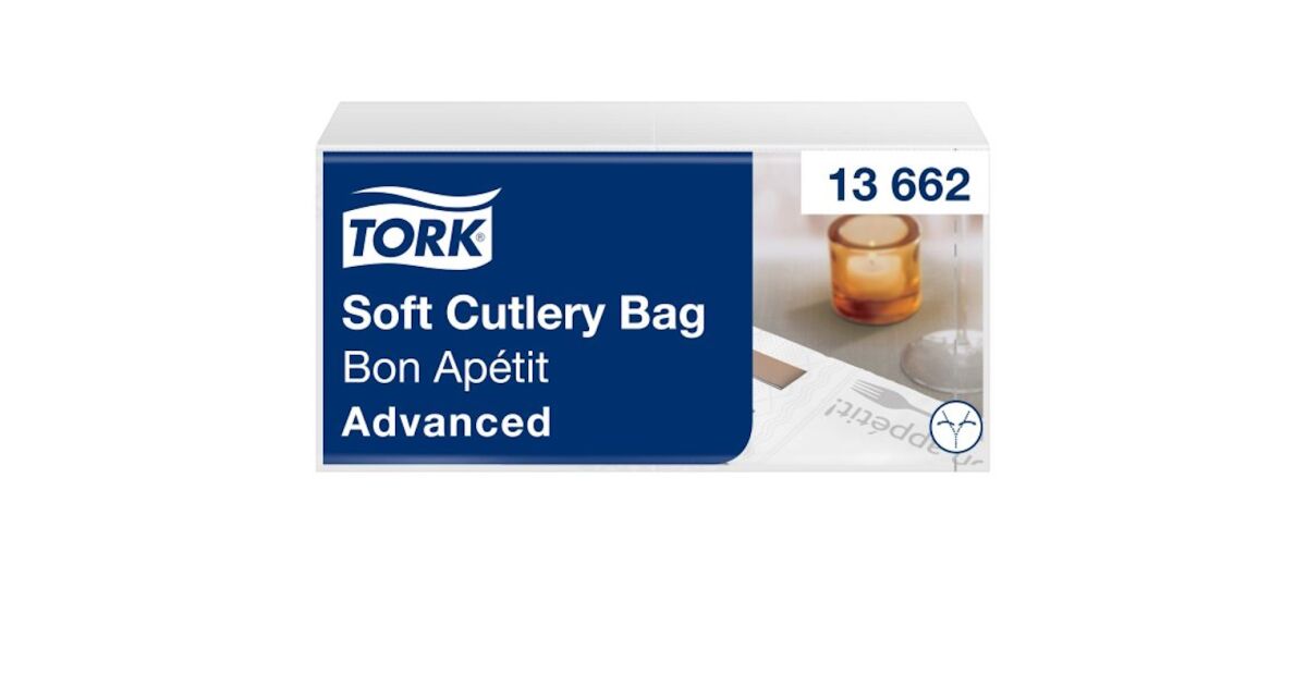 -Serwetka TORK, 1/8 składana, 3-warstwowa, 39x40 cm, TORK "Soft Bon Appetit Cutlery Pocket", dekor opis
