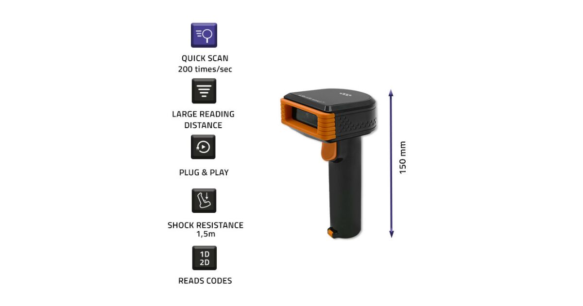 - błyskawiczne działanie - automatyczny tryb pracy, dzięki czemu kody skanowane są samoczynnie po zbliżeniu do czytnika,