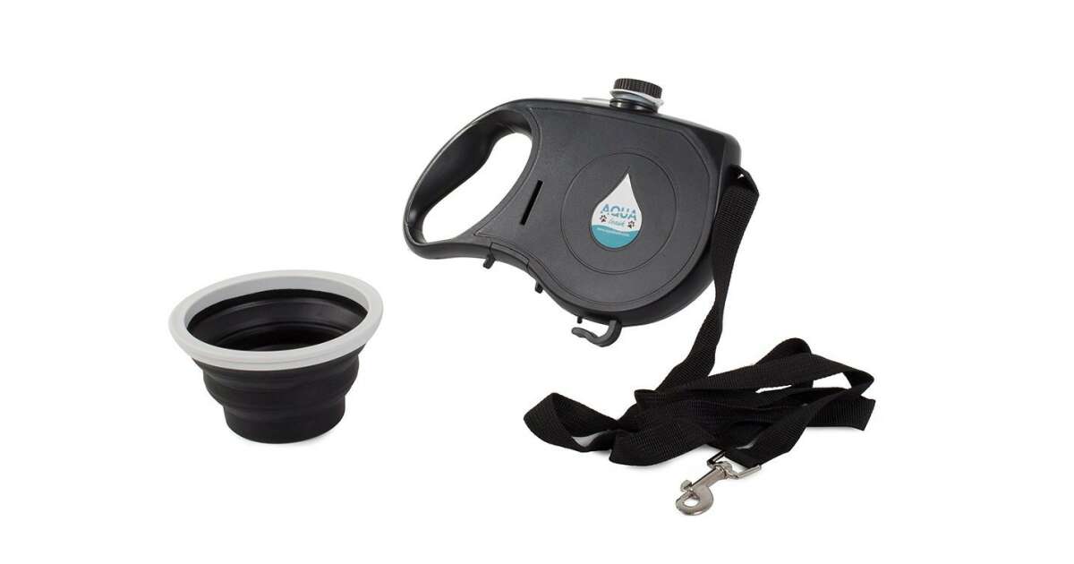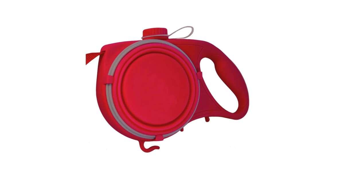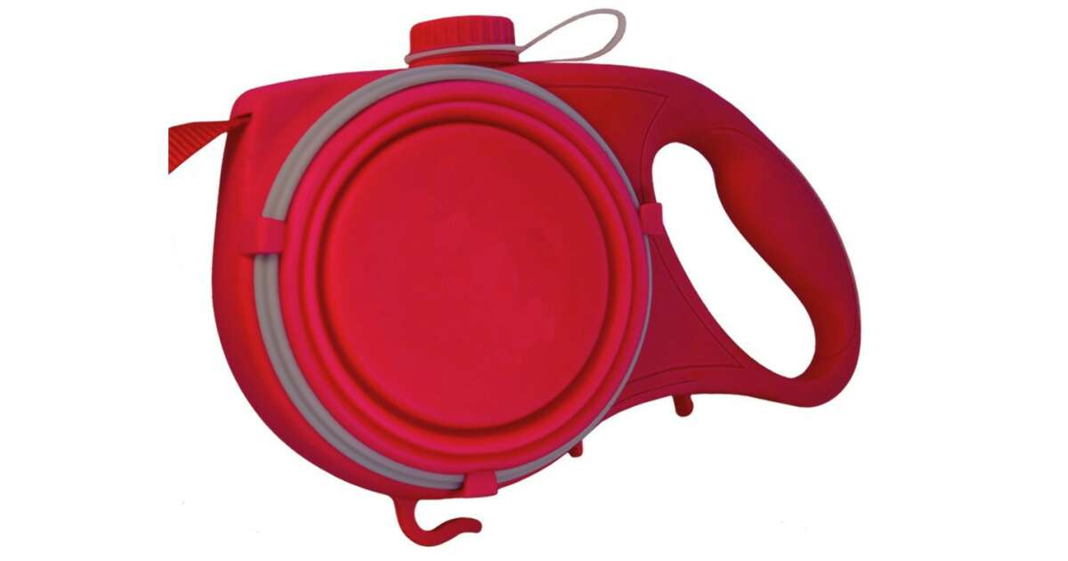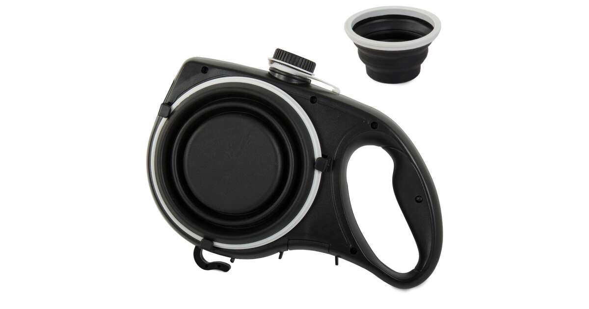 Ta wielofunkcyjna smycz ma wszystko, czego potrzebujesz do przyjemnego spaceru z psem! Poidełko, składana miska i schowek na woreczki na psie odchody – wszystko w jednym!
