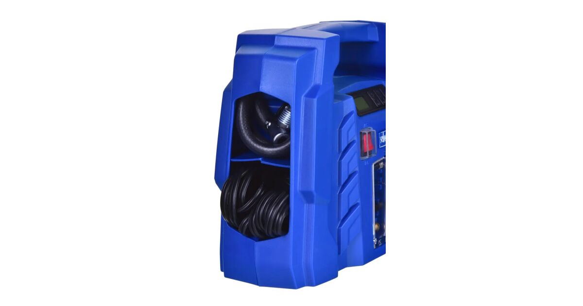 - Wbudowany schowek: Przewody i 0,6-metrowy wąż powietrzny można bezpiecznie przechowywać w urządzeniu.