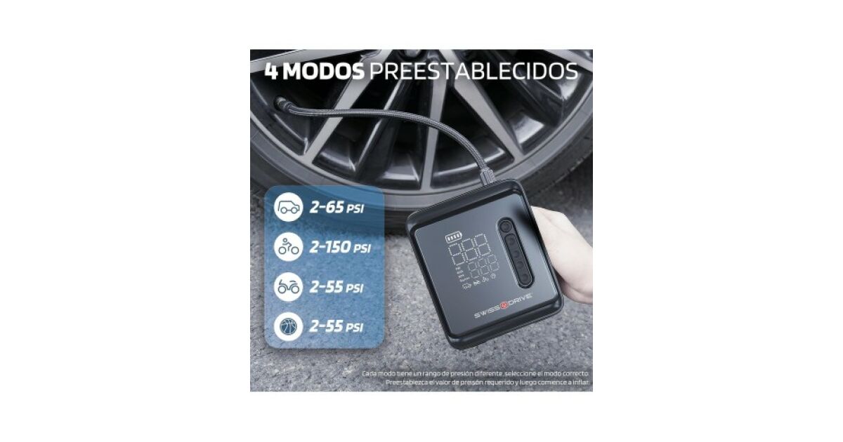 - ⚙️ 5 wstępnie ustawionych trybów: Z łatwością wybierzesz odpowiednie ciśnienie dla samochodu, motocykla, roweru lub piłek.