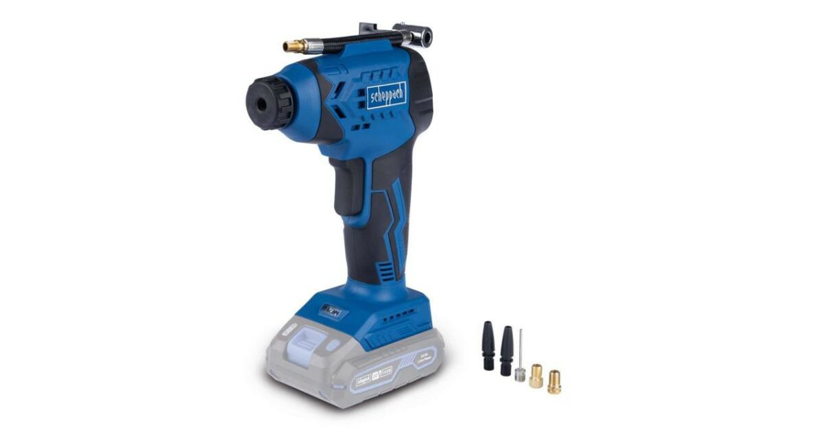 Kompresor akumulatorowy dla szerokiego zakresu potrzebSprężanie opon rowerowych, sprzętu sportowego lub zabawek dla dzieci szybko i wygodnie nigdy nie było łatwiejsze! Dzięki bezprzewodowej pracy i kompaktowym rozmiarom, bezprzewodowy kompresor Scheppach C-AC20-X oferuje maksymalną swobodę dla idealnego użytku domowego i w podróży.Cechy i funkcjeTen poręczny kompresor jest częścią serii Scheppach IXES 20V i może być łączony ze wszystkimi akumulatorami i ładowarkami z tej serii.Dzięki maksymalnemu ciśnieniu roboczemu 7 barów z łatwością radzi sobie z szerokim zakresem zadań.Praca bezprzewodowaMaksymalne ciśnienie robocze 7 barówWyświetlacz LCD pokazujący aktualne i ustawione ciśnienie w barach i PSIAutomatyczne wyłączanieErgonomiczna konstrukcja i miękki uchwyt SoftgripDuża średnica tłoka zapewniająca szybkie pompowanieWbudowane oświetlenie LEDDane techniczneNapięcie: 20 VMaks. Ciśnienie: 7 barPrędkość obrotowa: 3500 obr/minWyświetlacz LCD: takWymiary: 220 x 70 x 160 mmWaga netto: 0,6 kgZawartość opakowaniaOprócz urządzenia opakowanie zawiera 1x wąż ciśnieniowy, 1x igłę do pompowania piłek, 2x uniwersalne adaptery zaworów, 1x adapter do zaworów DunlopExpress i 1x adapter do zaworów Sclaverand. Opakowanie nie zawiera akumulatora i ładowarki.Fakty i faktyNazwa Scheppach jest znana i rozpoznawana na całym świecie w branży narzędzi do obróbki drewna, metalu i ogrodnictwa. Firma posiada ponad 90-letnie doświadczenie, co gwarantuje wysoką jakość i niezawodność. Seria IXES 20V obejmuje kilka różnych narzędzi, z których wszystkie są kompatybilne z tym samym akumulatorem i ładowarką, dzięki czemu użytkownicy mogą łatwo rozszerzyć zakres swoich narzędzi.