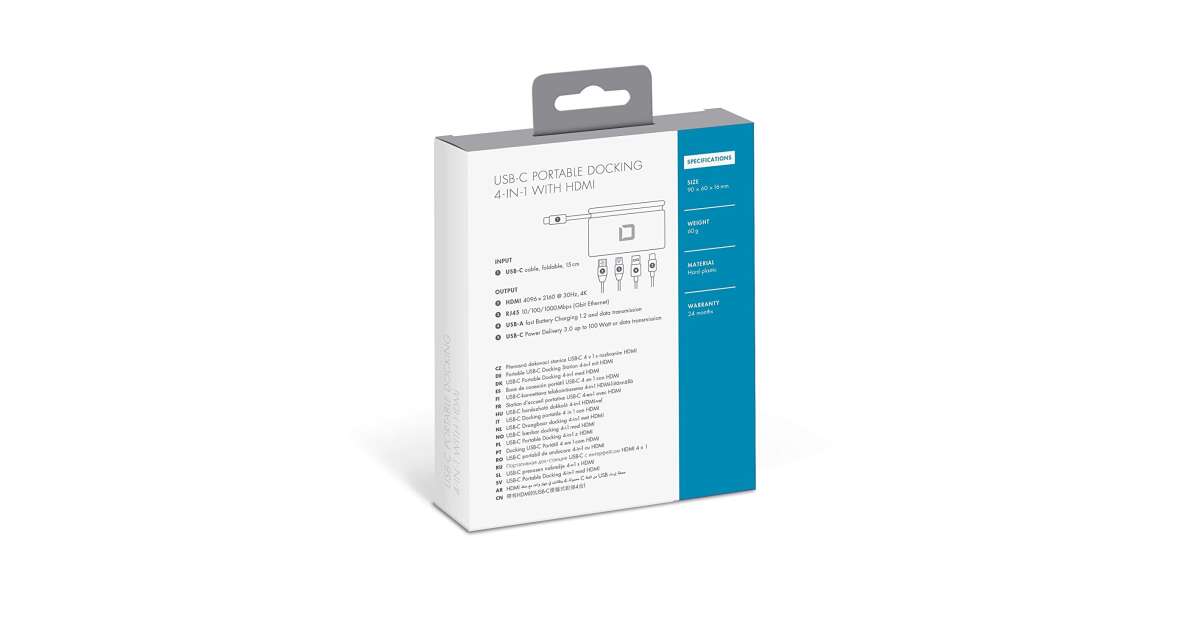 Ta kompaktowa stacja dokująca Dicota oferuje rozwiązanie problemu ograniczonej liczby portów USB-C w nowoczesnych laptopach. Za pomocą jednego złącza USB-C zapewnia cztery ważne funkcje, dzięki czemu możesz być maksymalnie produktywny gdziekolwiek jesteś.