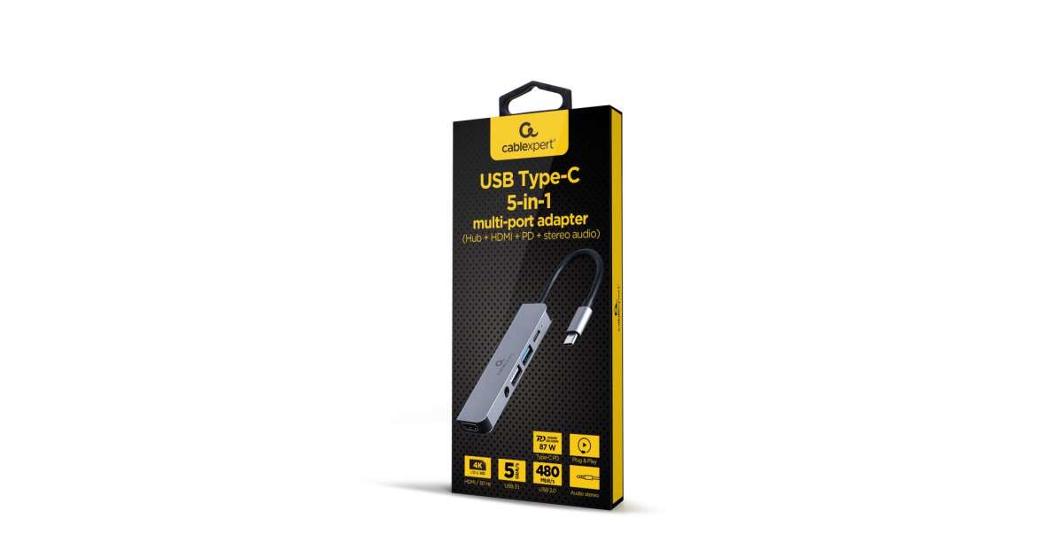 GEMBIRD A-CM-COMBO5-02 Adapter USB Type C 5w1 Hub + HDMI + PD + dźwięk stereo
