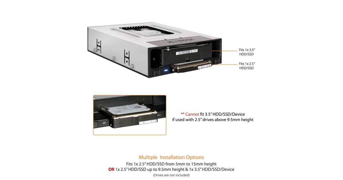 - Obsługa dwóch dysków: Jednoczesna obsługa 1 x 2,5" SSD/HDD i 1 x 3,5" HDD