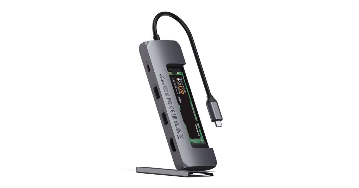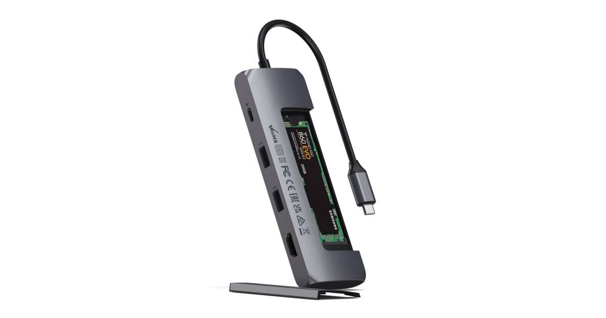 -Satechi Aluminium USB-C Hybrid Multiport Adapter (obudowa SSD, HDMI 4K, 2 x USB-A 3.1 Gen 2 do 10 Gbps) - Space Grey opis