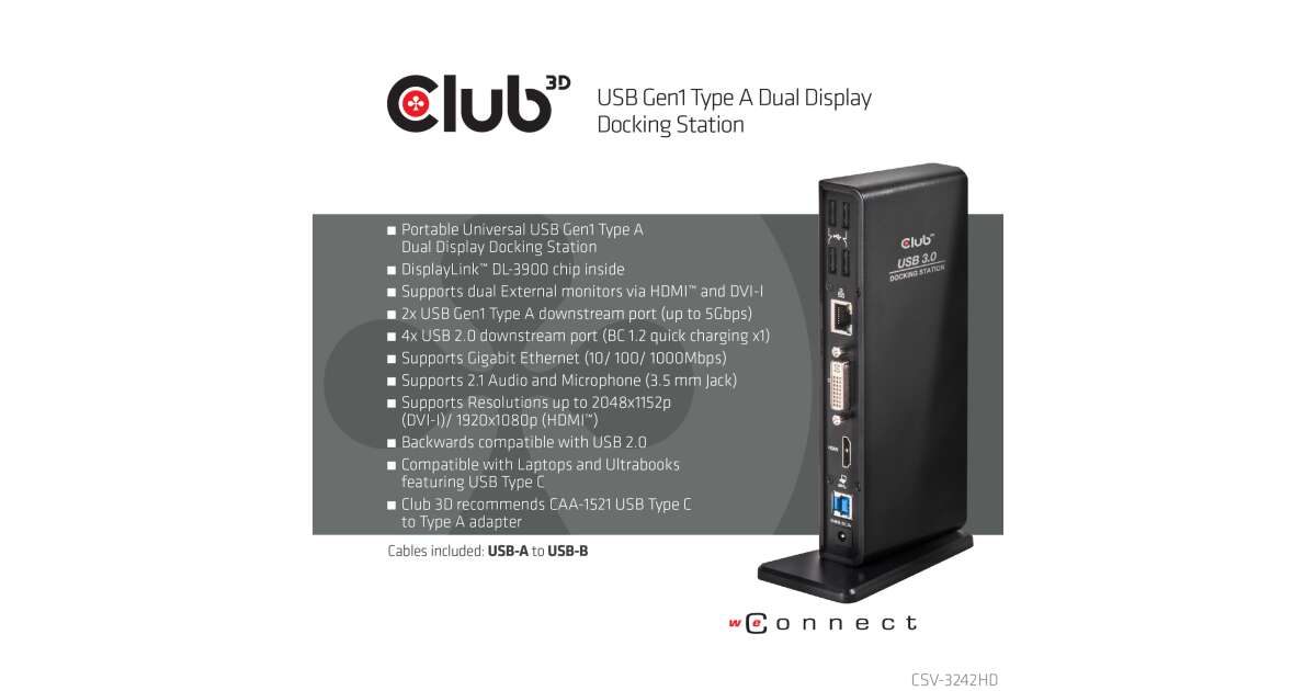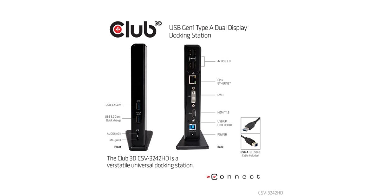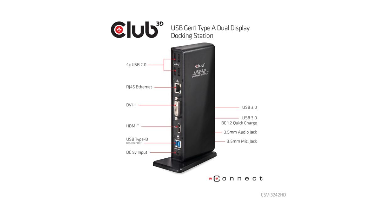 CLUB3D SenseVision USB3.0 Dual Display Docking Station (CSV-3242HD) opis