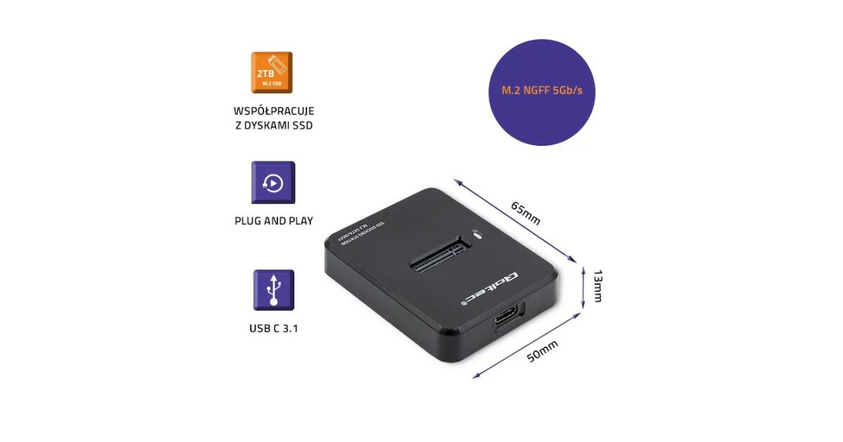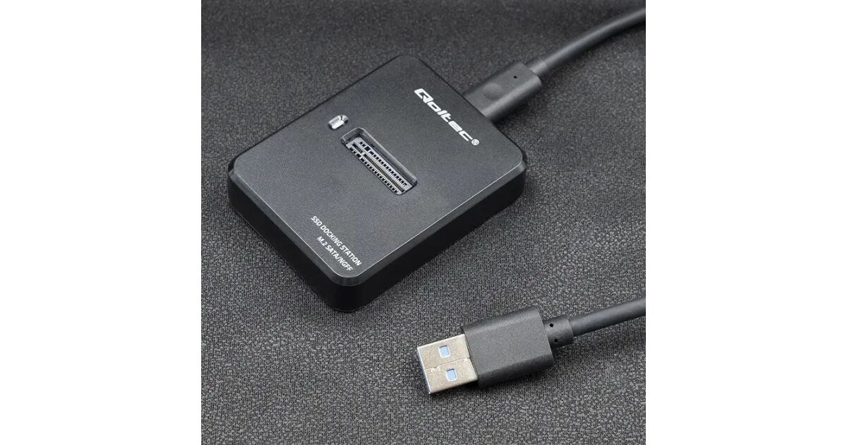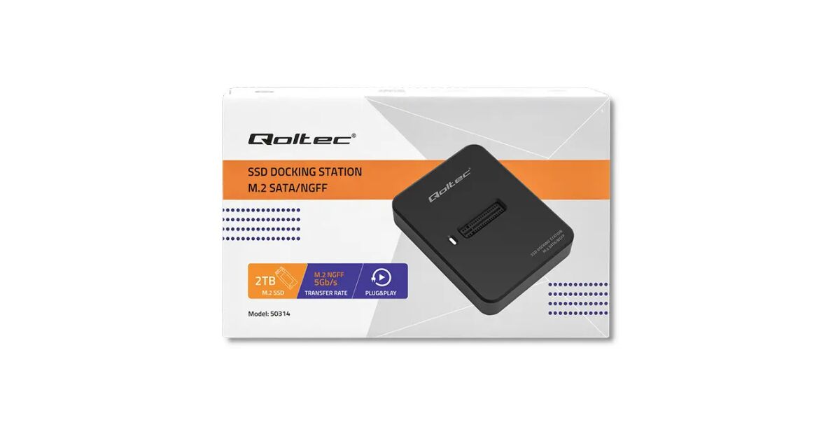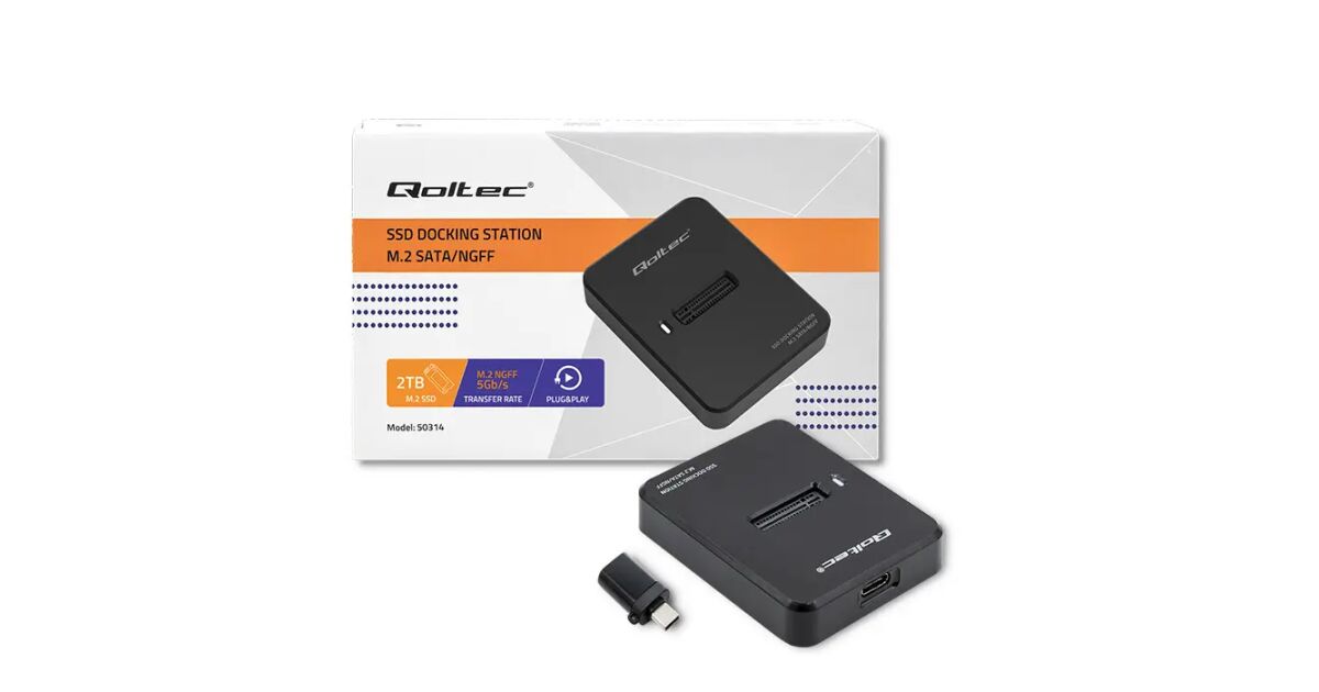 Stację dokującą można podłączyć także do telewizora lub monitora wyposażonego w port USB - wówczas pełnić będzie funkcję odtwarzacza video z ogromnym zapleczem pamięci, jeżeli gromadzisz zdjęcia i filmy na twardych dyskach to ten produkt dedykowany jest właśnie Tobie.Przenośna Stacja dokująca marki Qoltec pozwala na podłączenie dysku SSD do gniazda M.2 SATA a następnie za pomocą złącza USB C 3.1 do wybranego urządzenia elektronicznego. Stacja współpracuje z takimi urządzeniami jak TV, komputer, laptop, konsola do gier, router.
