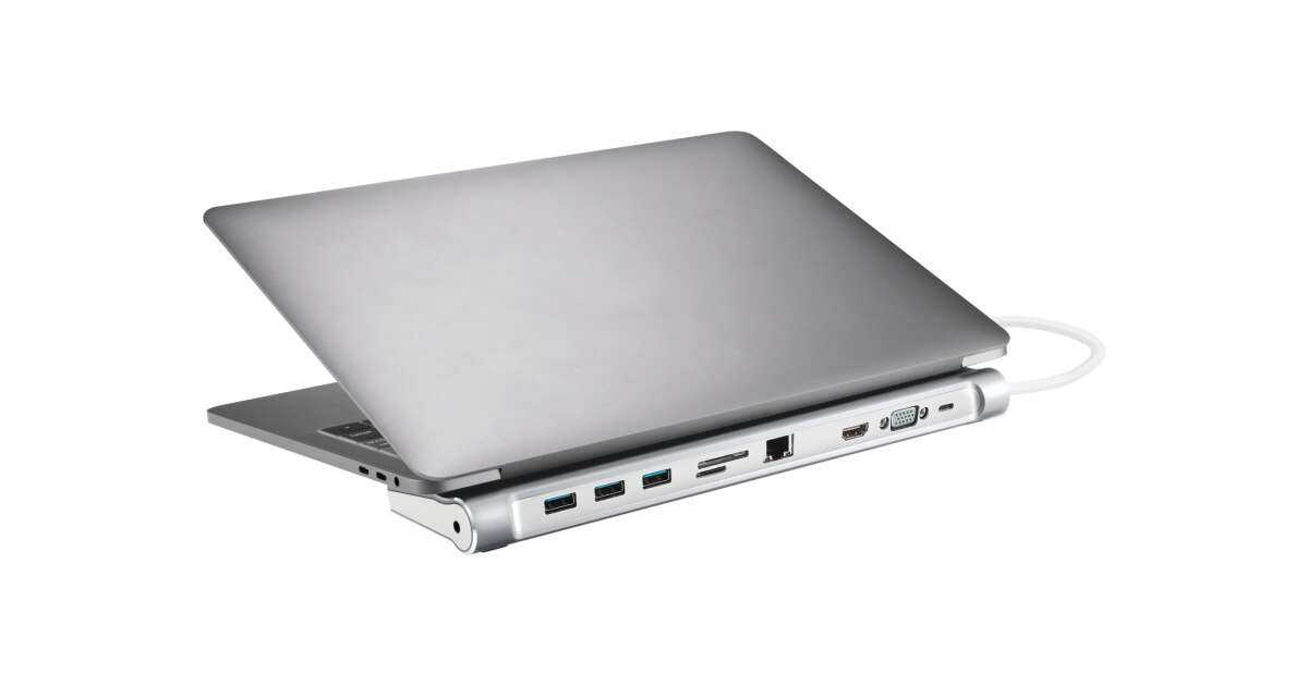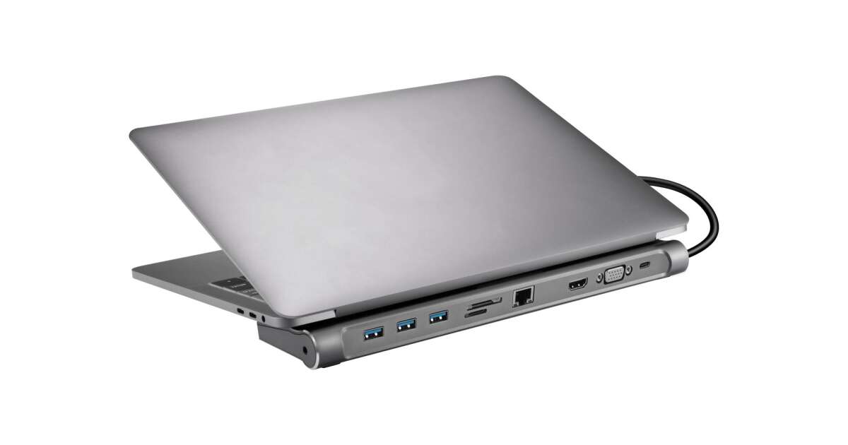 Ta wszechstronna stacja dokująca pozwala jednym kablem USB-C łatwo podłączyć laptopa do wszystkich ważnych urządzeń peryferyjnych. Pożegnaj się z plątaniną kabli i ciesz się płynną pracą!