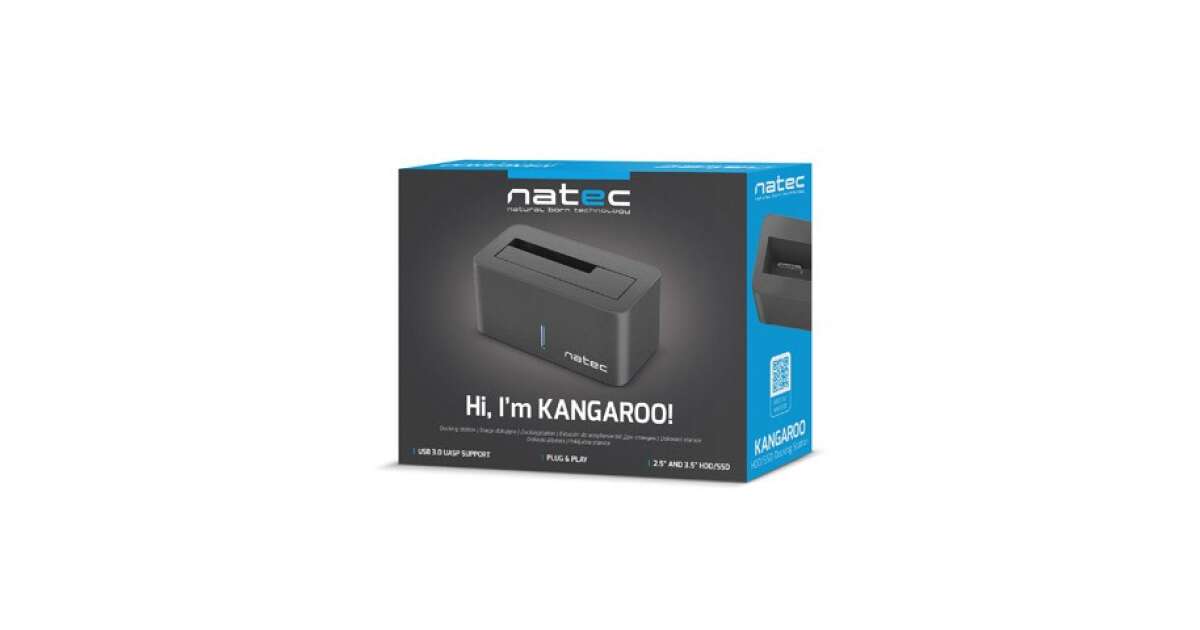 Ta kompaktowa i elegancka stacja dokująca Natec Kangaroo HDD umożliwia łatwe podłączenie dysków SATA 2,5" i 3,5" do komputera przez interfejs USB 3.0. Dzięki wbudowanemu zasilaczowi nie potrzebujesz dodatkowego źródła zasilania.