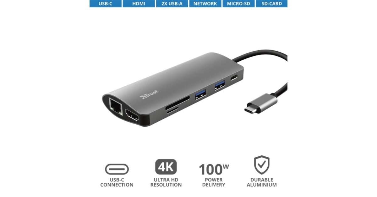 Adapter wieloportowy USB-C 7 w 1 TRUST: Idealne połączenie dla wszystkich Twoich urządzeń 💻