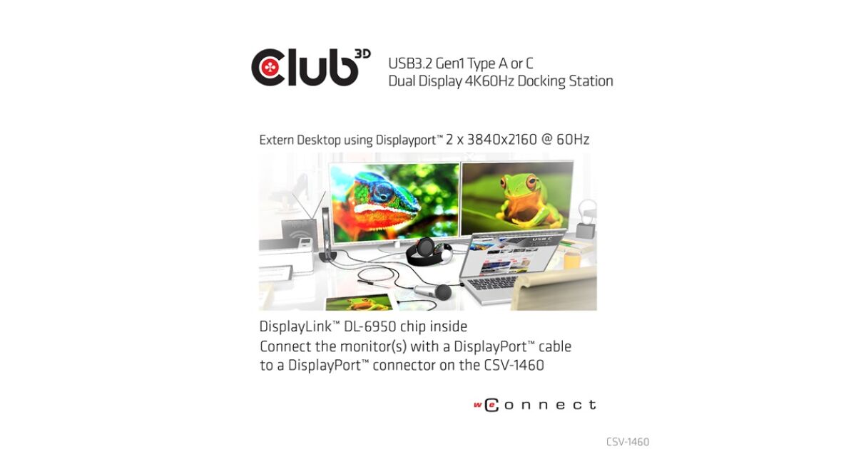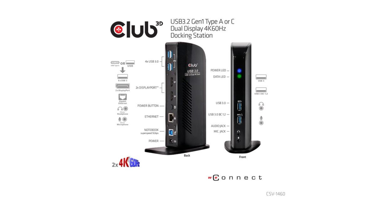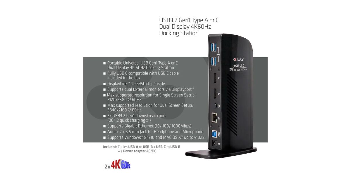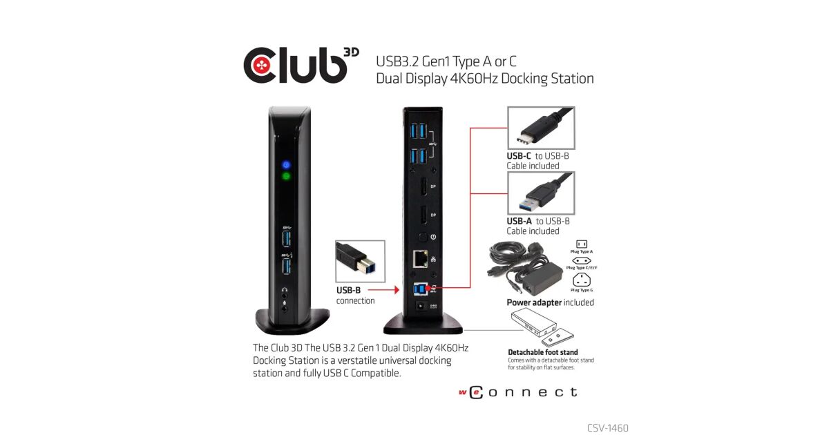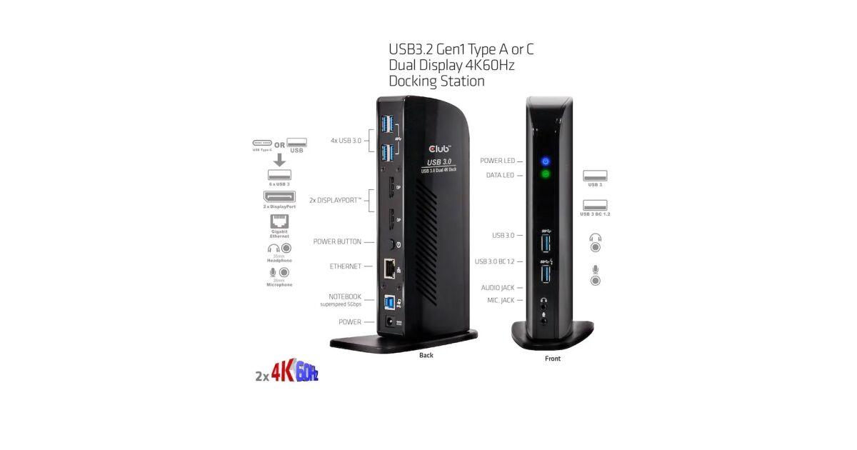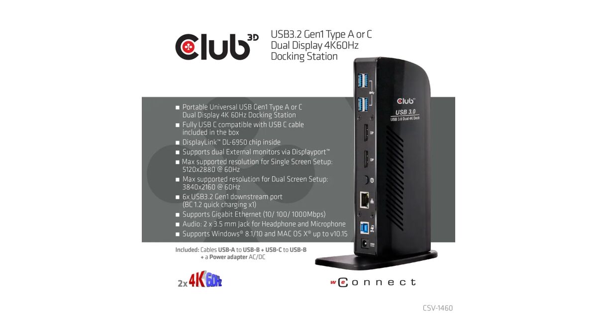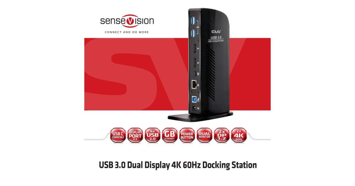 Uniwersalna stacja dokująca CLUB3D SenseVision USB 3.0 (CSV-1460): 2x Wyświetlacz 4K 60Hz, Więcej Portów USB i Gigabit Ethernet 🖥️
