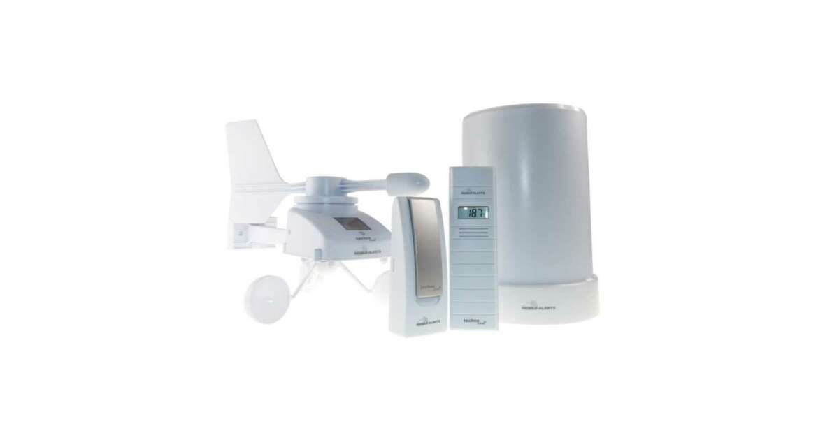 Zawartość opakowania: Stacja pogodowa, anemometr, deszczomierz, gateway i baterie.