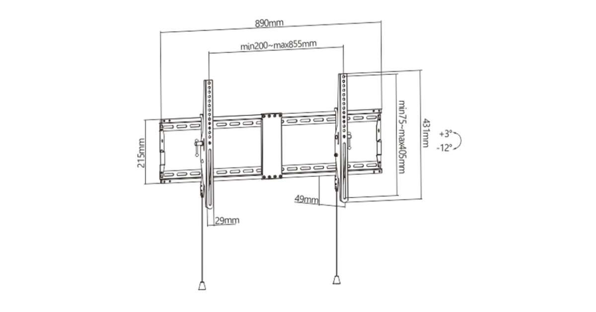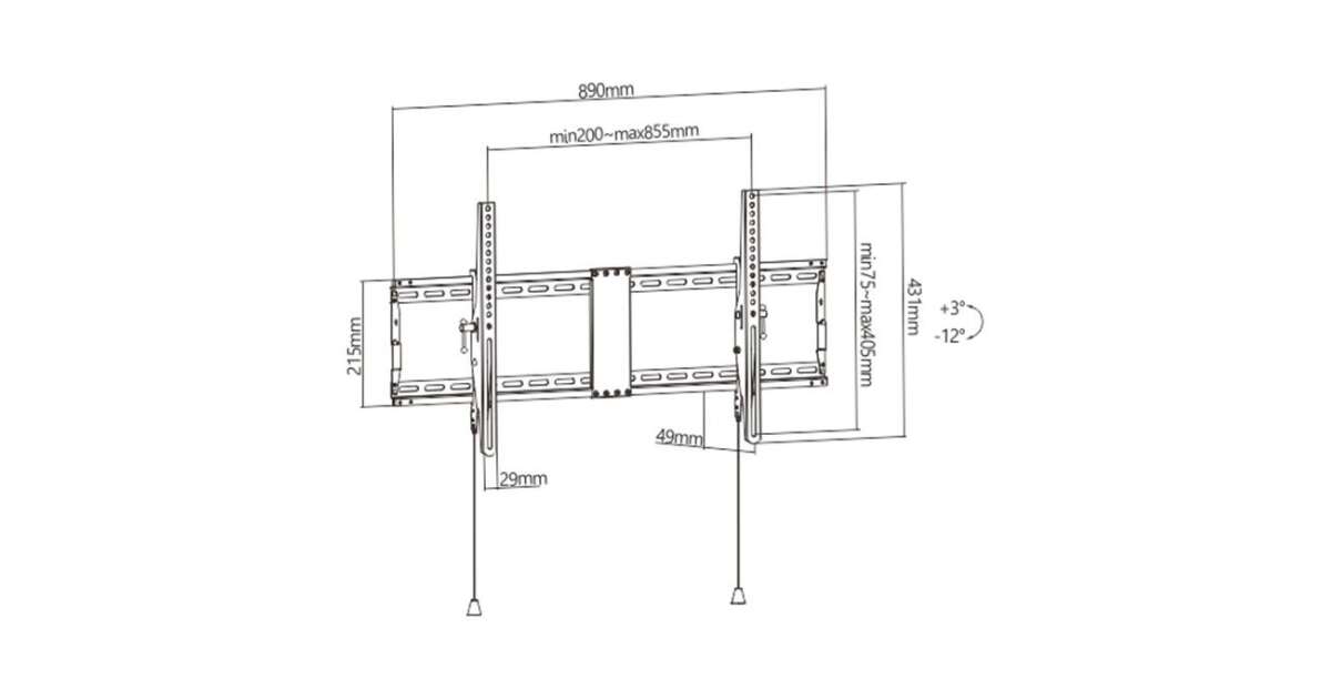 Wytrzymały stalowy uchwyt ścienny do ekranu LCD Obsługuje większość telewizorów LCD o przekątnej od 43 do 90 cali Automatyczne zamki sprężynowe z linkami szybkiego zwalniania dla łatwej instalacji Zgodność ze standardem VESA, maks. 800 mm x 400 mm Umożliwia pochylenie do 12 stopni Odległość od ściany: 49 mm Zawiera wszystkie niezbędne materiały instalacyjne Informacje o produkcie Przeznaczenie Telewizory Rodzaj Ścienny Przekątna ekranu (min.) 43 '' Przekątna ekranu (maks.) 90 '' Standard VESA 400 x 400 800 x 400 200 x 200 300 x 200 300 x 300 400 x 200 400 x 300 600 x 400 Obciążenie (maks.) 70 kg Regulacja wysięgu Nie Uchwyt narożny Nie Materiał Stal Akcesoria w zestawie Elementy do montażu na ścianie Zestaw akcesoriów instalacyjnych Instrukcja instalacji Kolor Czarny Wymiary 45 x 12.2 x 8 cm Waga 2.68 kg Pozostałe parametry Wykończenie powierzchni: malowanie proszkowe Profil: 49 mm