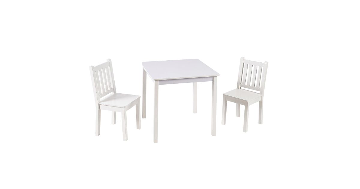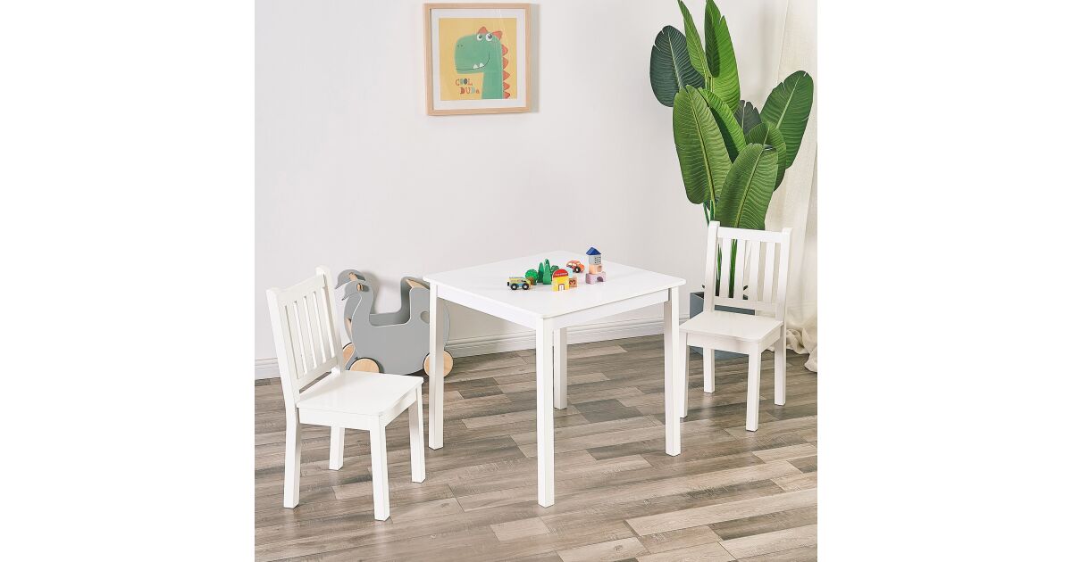 Ten solidny, drewniany zestaw stolika i krzesełek dla dzieci to idealne miejsce do nauki, rysowania, zabawy i jedzenia. Czysty, biały design doskonale pasuje do każdego pokoju dziecięcego.