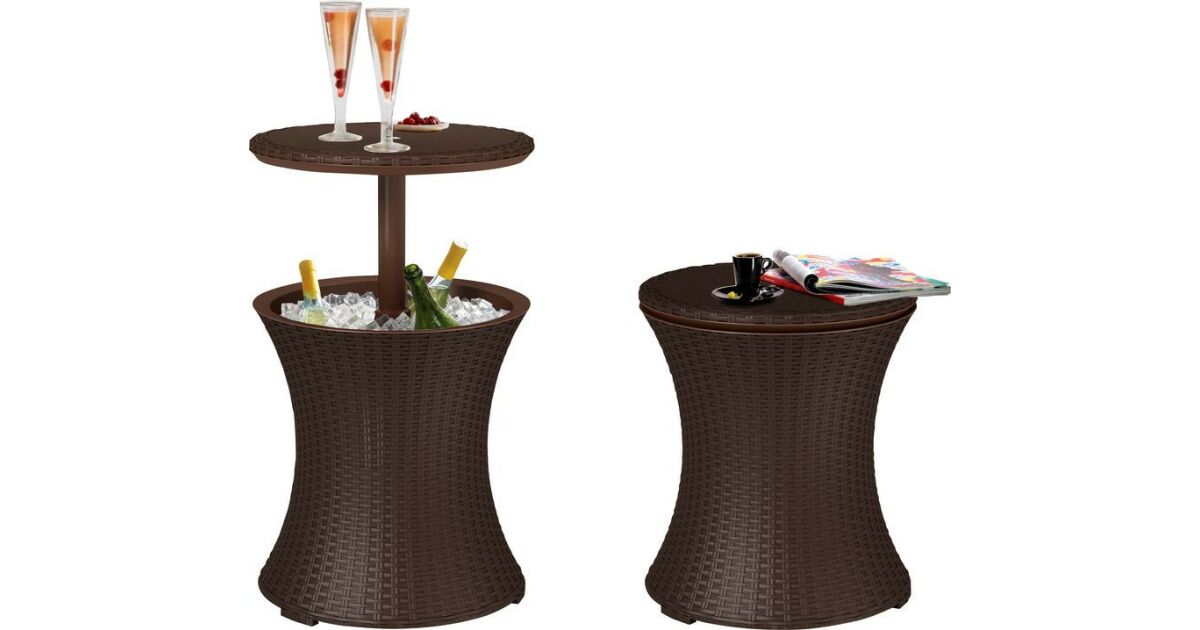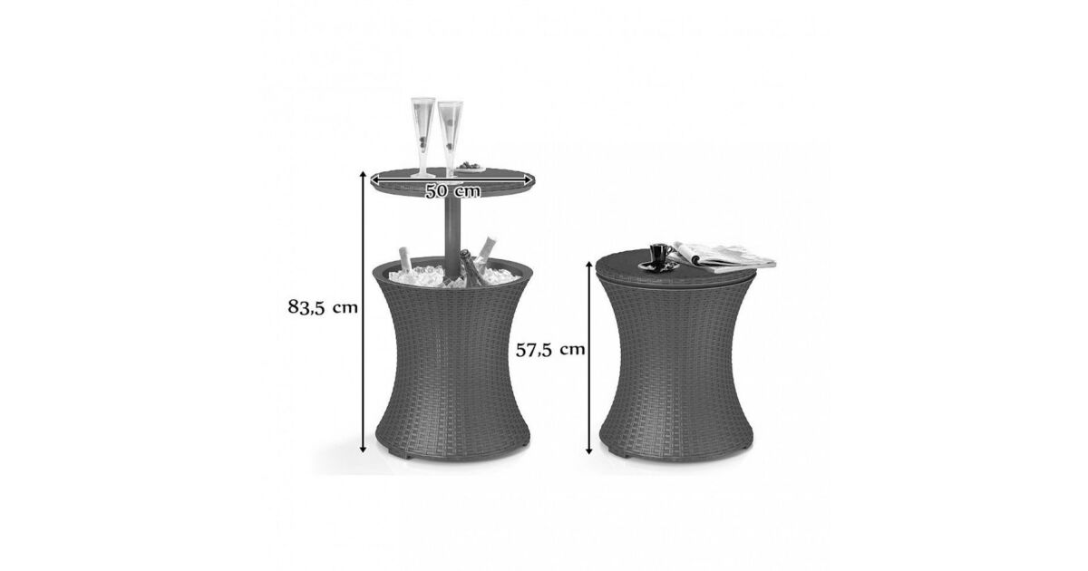 Ten stylowy i praktyczny KETER Cool Bar to idealne uzupełnienie każdej imprezy w ogrodzie, grilla lub wesela. Wykonany z tworzywa sztucznego imitującego rattan stół jest nie tylko estetyczny, ale także utrzymuje zimno napojów i jedzenia do 12 godzin! Jest łatwy do przenoszenia, dzięki czemu można go umieścić w dowolnym miejscu w ogrodzie.