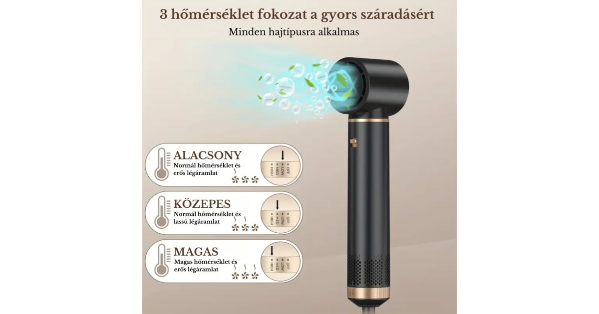 Suszarka do włosów 5 w 1 na gorące powietrze z wymiennymi głowicami, rękawice chroniące przed ciepłem, do włosów suchych i mokrych - czarno-złota - WT-638 opis