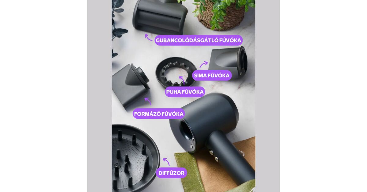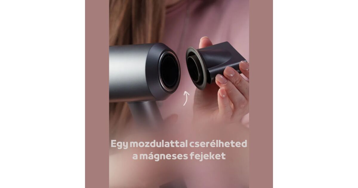 Suszarka do włosów z jonizacją ujemną, wymiennymi głowicami, regulowaną temperaturą i przepływem powietrza – srebrnoszara