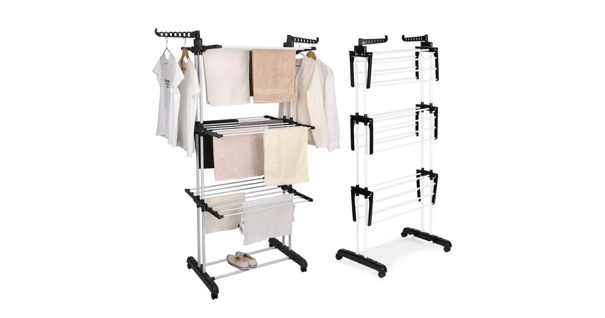 Składana pionowa suszarka do ubrań ModernHome – Oszczędność miejsca w Twoim domu 🧺