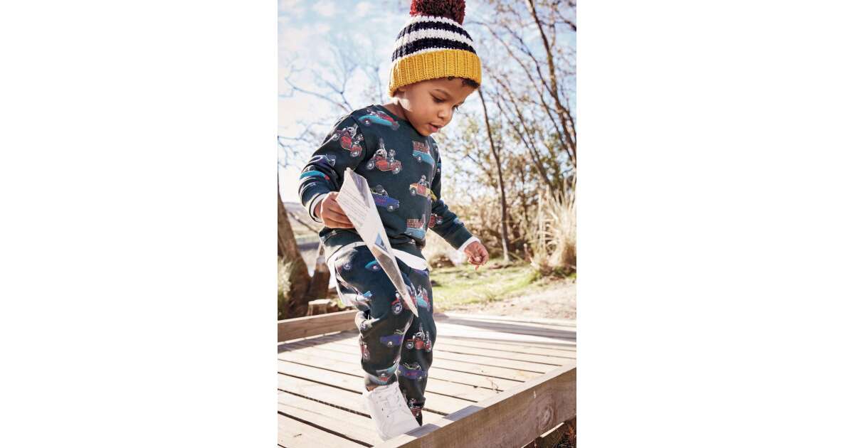 Ta granatowa, miękka bawełniana bluza to idealny wybór dla małych chłopców, którzy kochają samochody i pieski! Jej wesoły, kolorowy wzór rozjaśni szare dni i zapewni komfort noszenia w chłodniejsze dni.