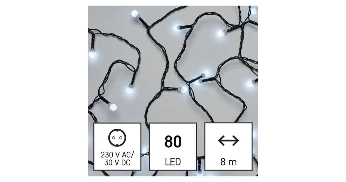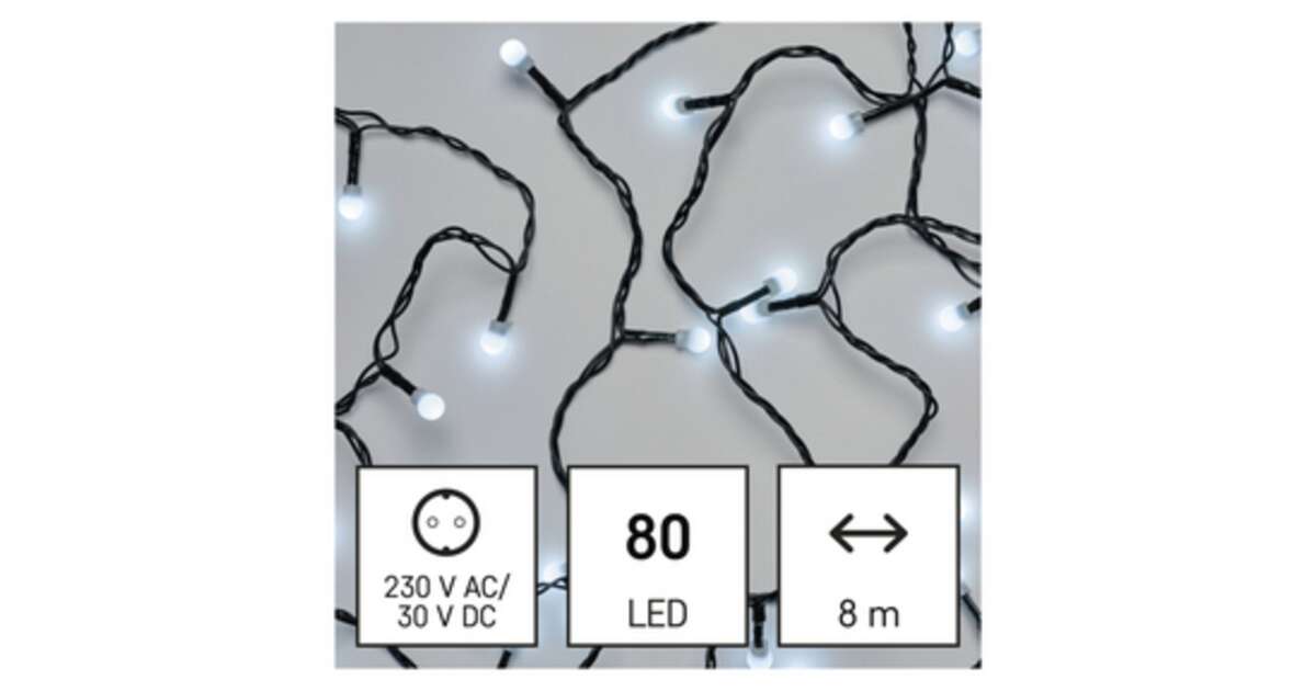 LED-owy światełkowy łańcuch choinkowy, wiśnie – kulki, 8 m, na zewnątrz i wewnątrz, zimna biel, progr opis