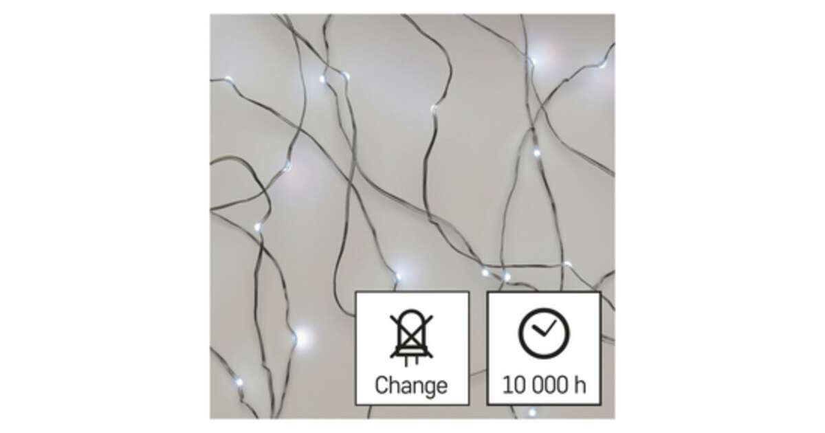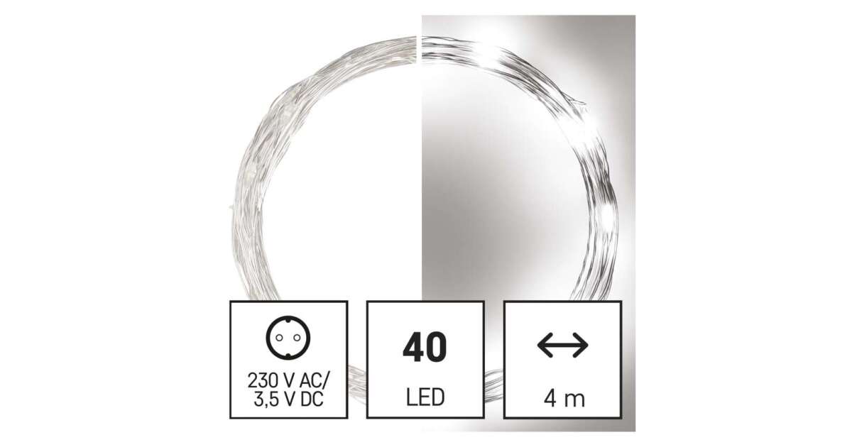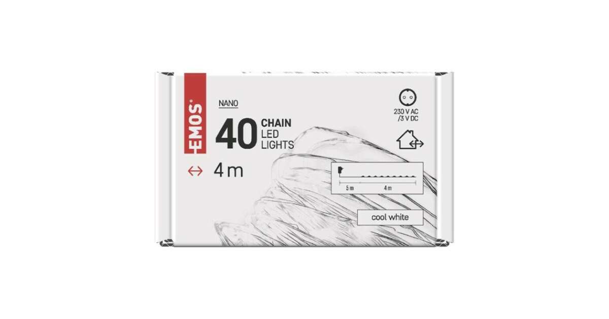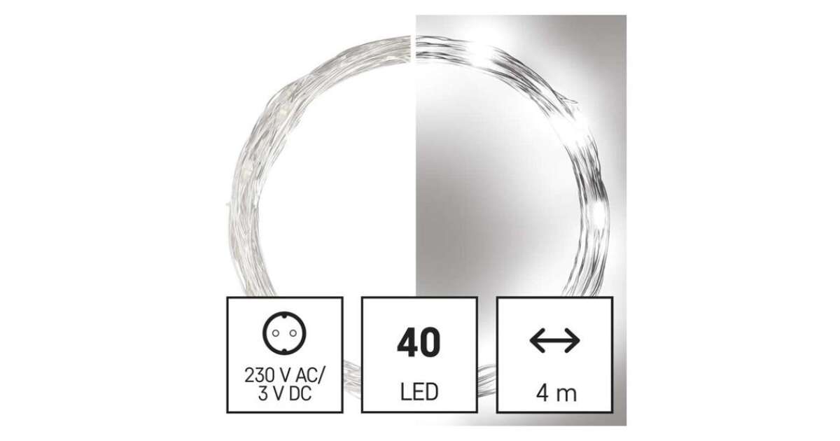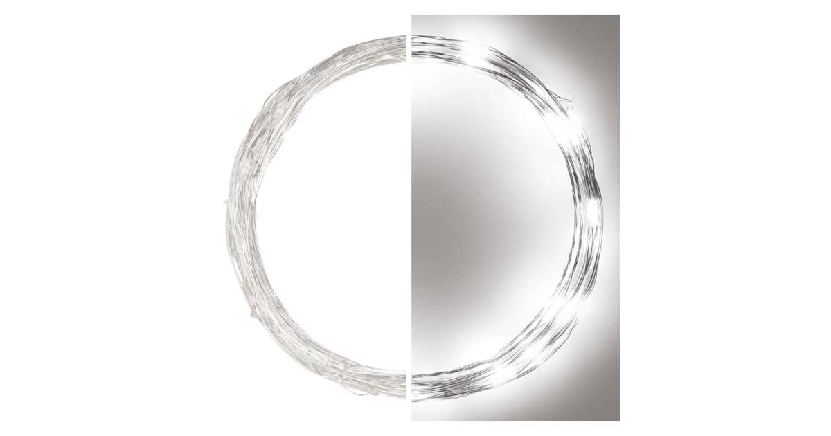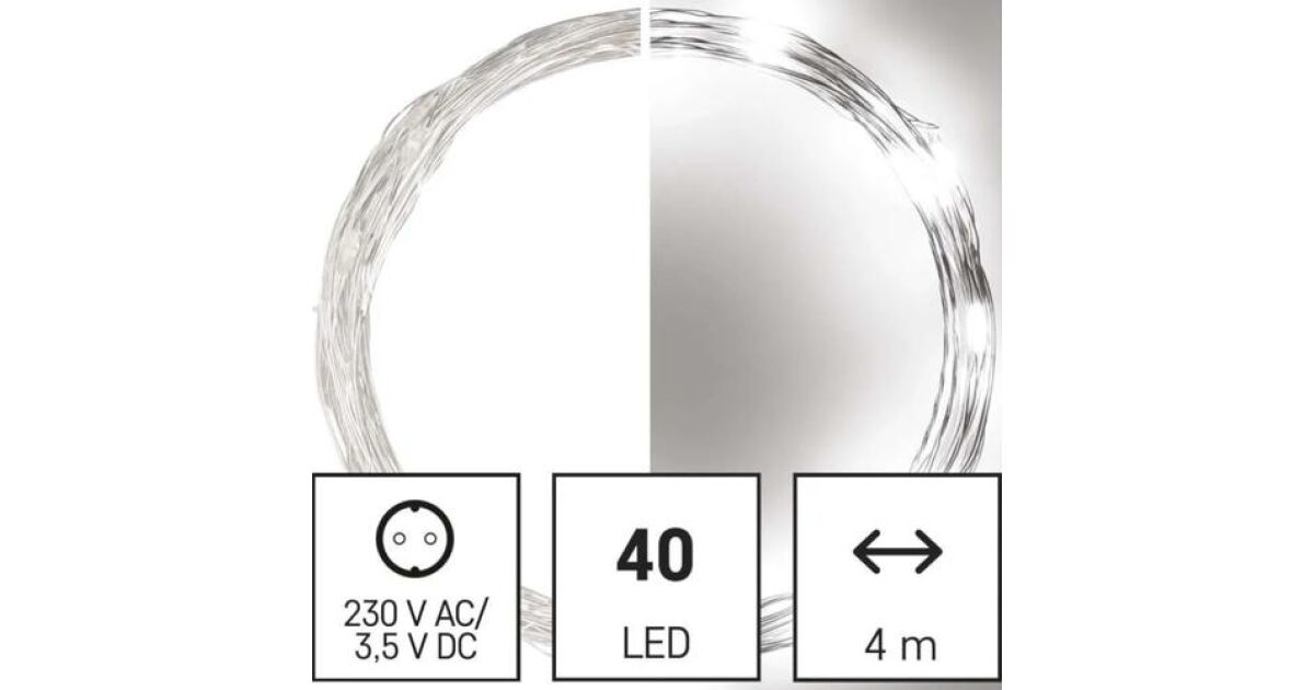 Ten 4-metrowy srebrny nano LED-owy girland to idealny wybór do świątecznej dekoracji, zarówno wewnątrz, jak i na zewnątrz. 40 małych, zimnobiałych LED-ów stworzy przyjemny nastrój w Twoim domu. Cienki, srebrny kabel dyskretnie wpasuje się w otoczenie i jest łatwy w formowaniu.