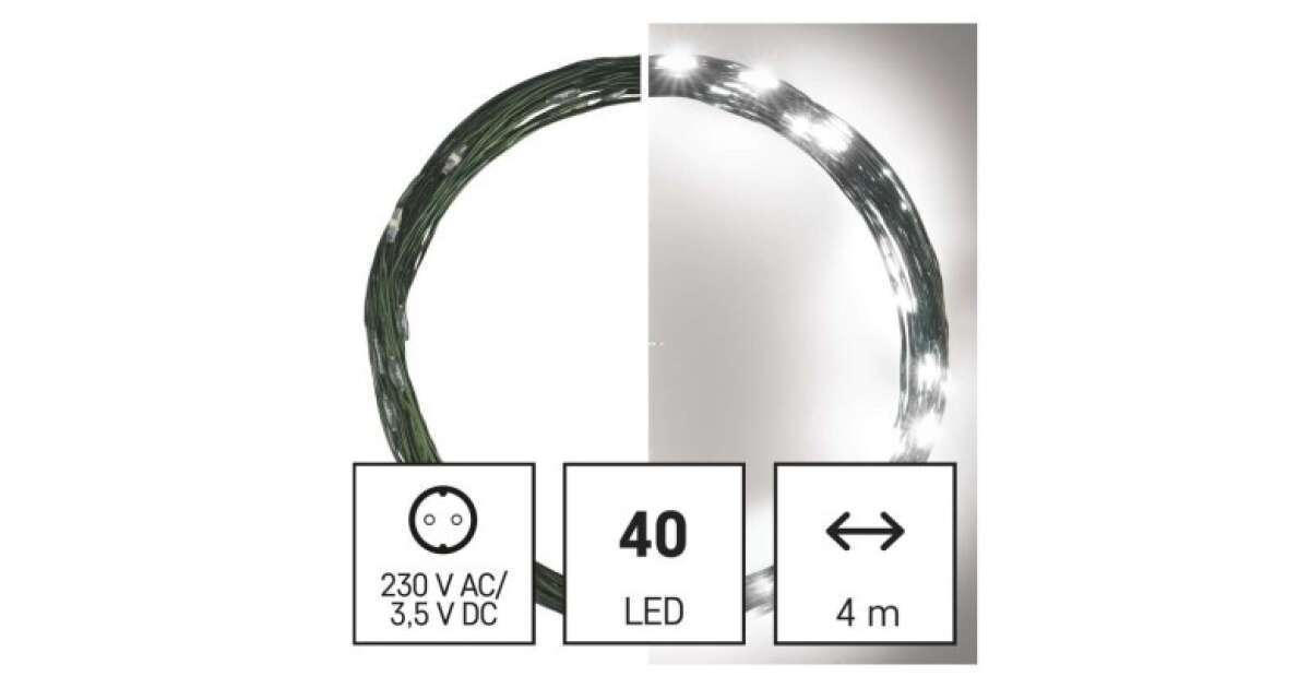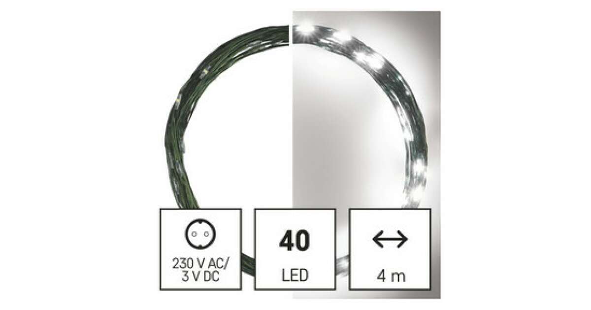 Lampki choinkowe LED nano, zielone, 4 m, zewnętrzne i wewnętrzne, chłodna biel, timer