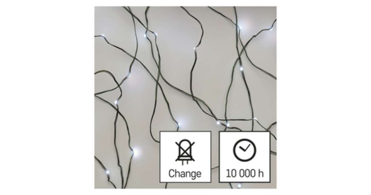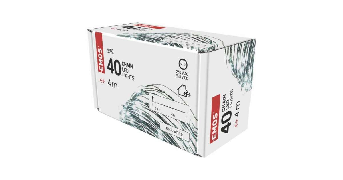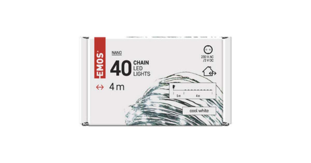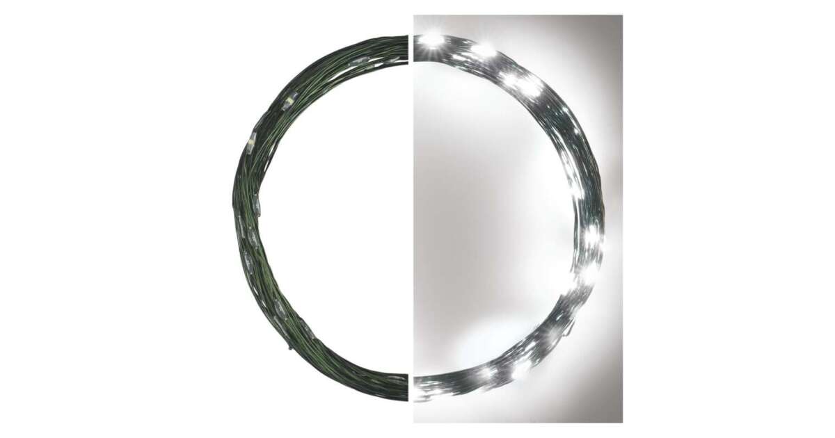 Ten 4-metrowy LED-owy nano girland z zielonym kablem to idealny wybór do świątecznej dekoracji, zarówno wewnątrz, jak i na zewnątrz. Zimne białe światło tworzy przyjemny nastrój, a funkcja timera pozwala oszczędzać energię.