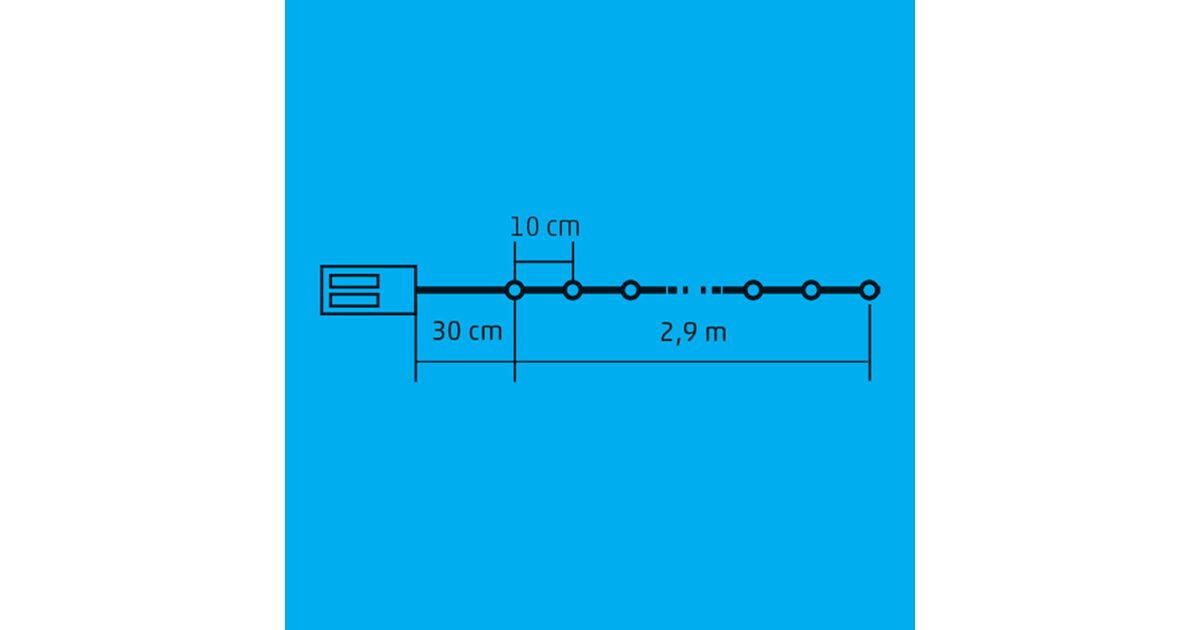 Home Łańcuszek świetlny LED ML 30/WH micro, 2,9 m / 30 diod mikroLED o barwie chłodnej bieli, światło ciągłe, przełączane i czasowe, przezroczysty przewód, zasilanie bateryjne, do użytku wewn