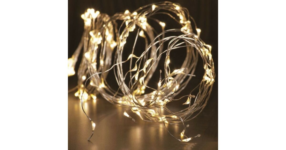 Home Zestaw lampek łańcuchowych micro LED ML 120/WW, 120 ciepłych białych mikro diod LED, 6-bolcowy, cienki, srebrny przewód, zasilacz sieciowy, do użytku na zewnątrz i do wnętrz