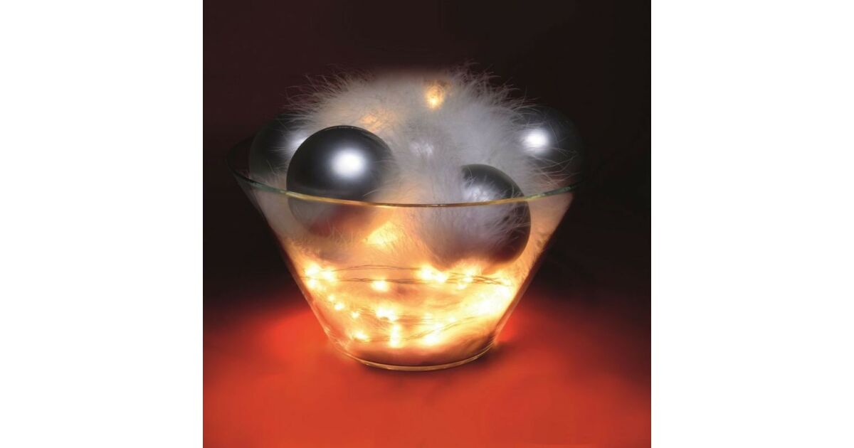 Home Zestaw lampek łańcuchowych micro LED ML 120/WW, 120 ciepłych białych mikro diod LED, 6-bolcowy, cienki, srebrny przewód, zasilacz sieciowy, do użytku na zewnątrz i do wnętrz opis