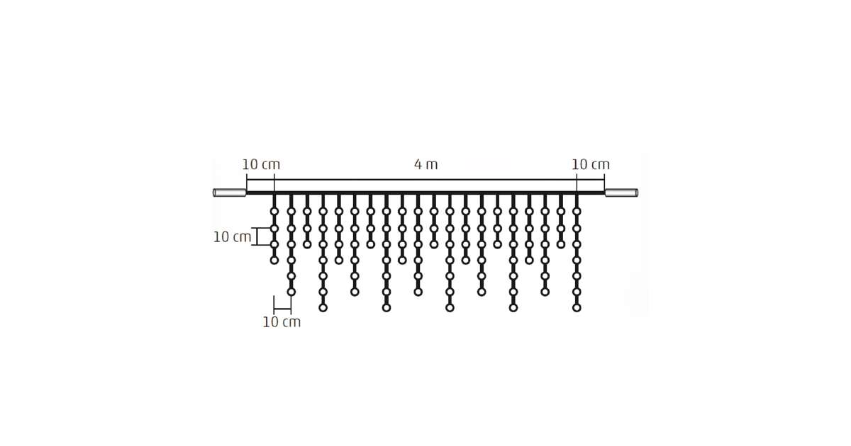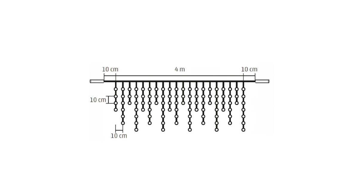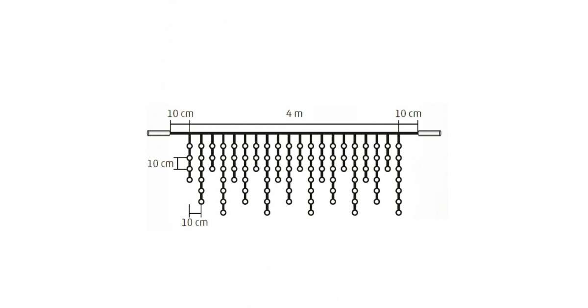 - Wymiary: 400 cm szerokości, 10 cm pionowe kropelki (patrz tabela rozmiarów na zdjęciach produktu)