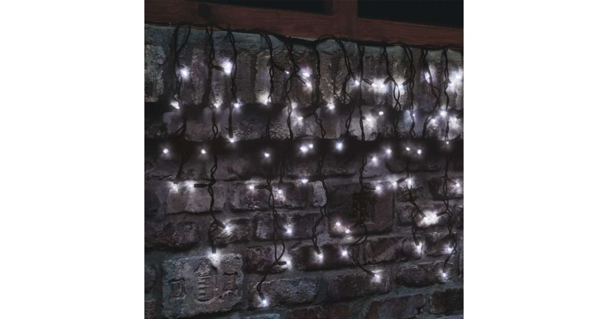 Strona główna Kurtyna świetlna LED KSF 204/WH, 2x2 m / 204 diody LED o barwie zimnej bieli, światło ciągłe, przewód czarny, możliwość aranżacji, do zastosowań zewnętrznych i wewnętrznych